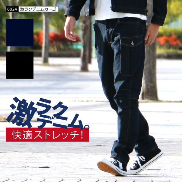 作業ズボン デニム カーゴパンツ ストレッチ ワークパンツ メンズ ユニフォーム 作業服 作業着 黒 ネイビー ブラック ストレッチデニム 農業 デニム作業着 パンツ 長ズボン 仕事着 日曜大工 ガーデニング 農作業 DIY 庭仕事 草刈り 畑仕事 男女兼用 6824 激ラクデニムカーゴ
