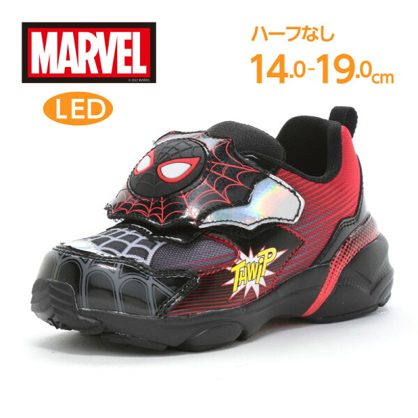 【12/26 11:00-1/5 23:59 10%OFFクーポン】MARVEL マーベル スパイダーマン 子供靴 キッズ スニーカー 光る LED搭載 男の子 ムーンスター moonstar【2025年秋新作6月3日発売】MV 027LE ブラック