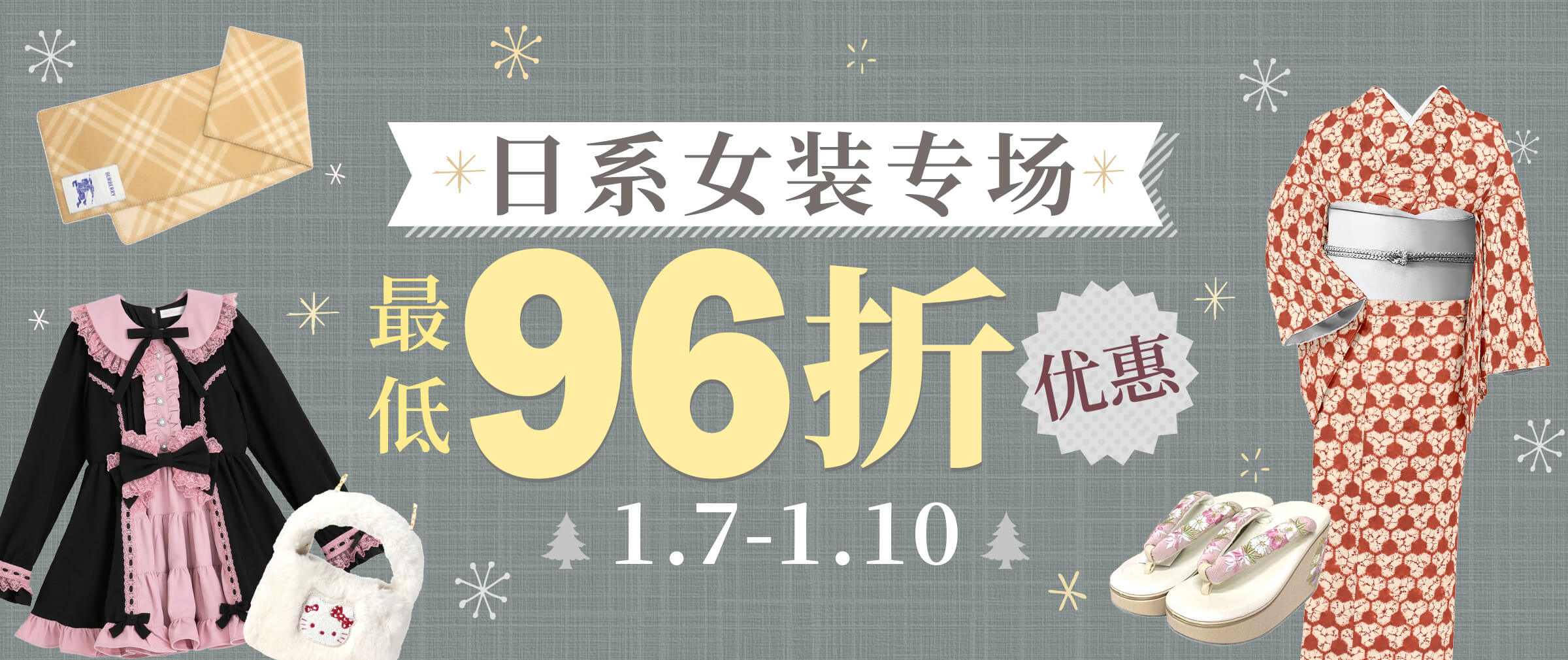 1、【97折优惠券】在以下平台购买日系女装专场商品,享受97折商品价格优惠:煤炉, Rakuma, Rakuten, JDirectItems Auction, 以及 JDirectItems Fleamarket。