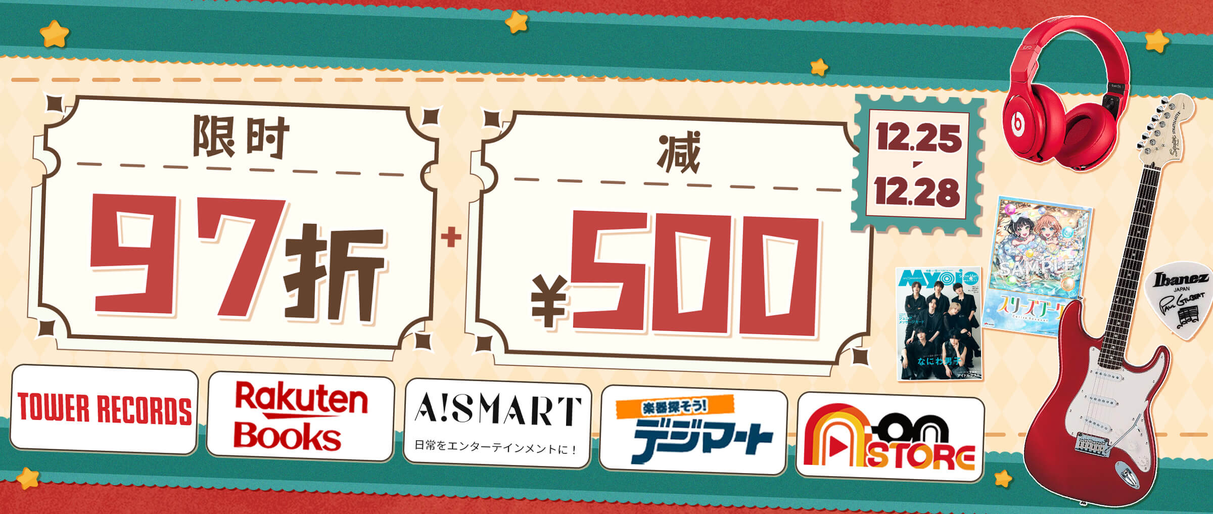 1、【97折折扣券】在音乐影像专区(Rakuten Books+Tower Records+Asmart+Digimart+A-onstore)订单享受97折商品价格优惠,无折扣上限。