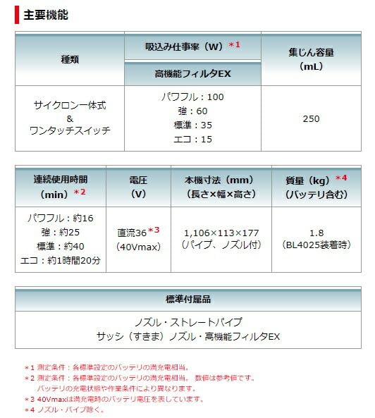 | 付属コンポーネント: | ノズル・ストレートパイプ・サッシ(すきま)ノズル・高機能フィルタEX |