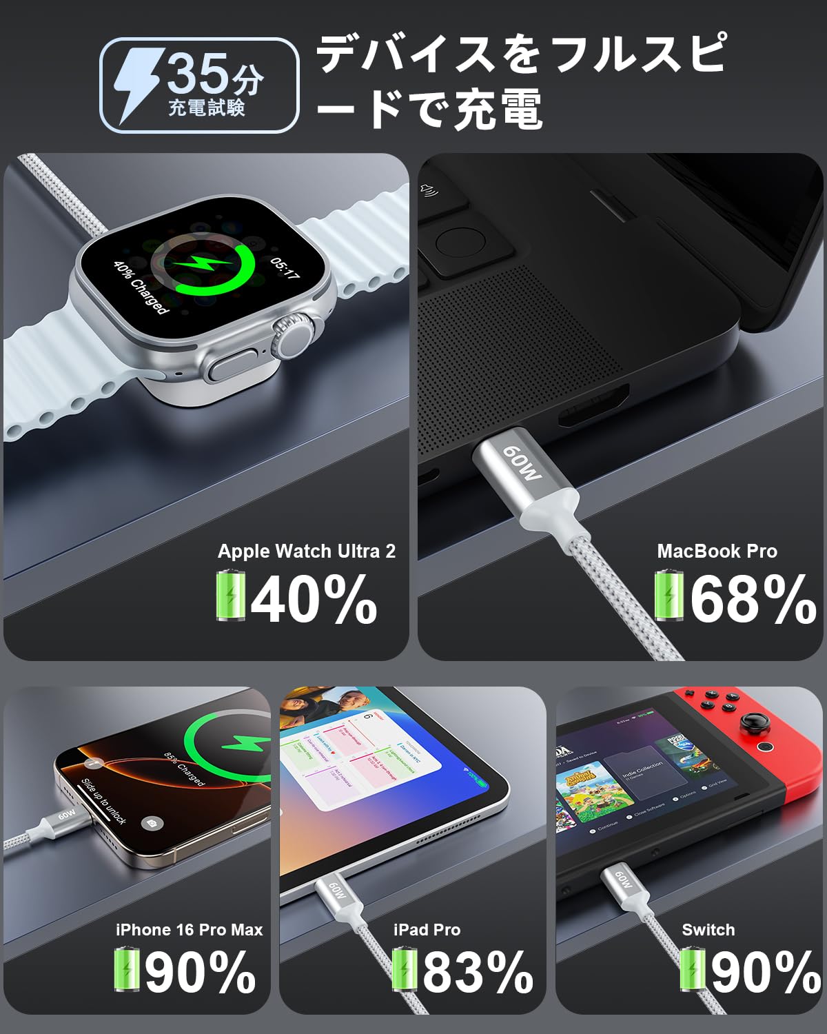 | ケーブルタイプ: | USB Type-C + ライトニング + Apple Watch |