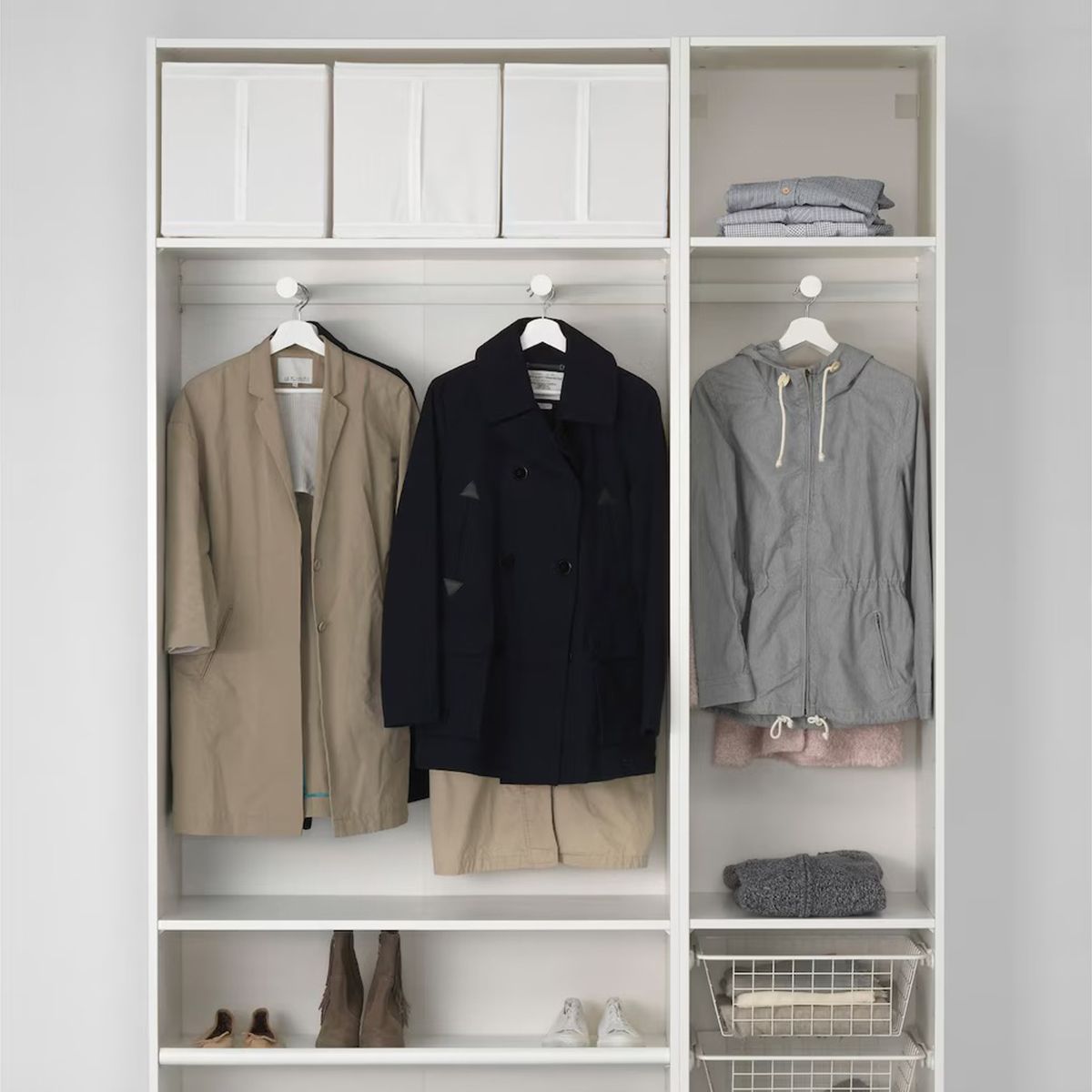 ボックスごとに、靴下、トレーニングウェア、たたんだセーターなどを分けて収納しましょう。このボックス3個セットは、SKUBB/スクッブ シリーズのほかのさまざまなアイテムと同様に、ワードローブをすっきり整理するのに役立ちます
