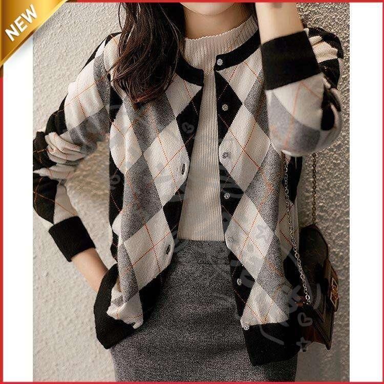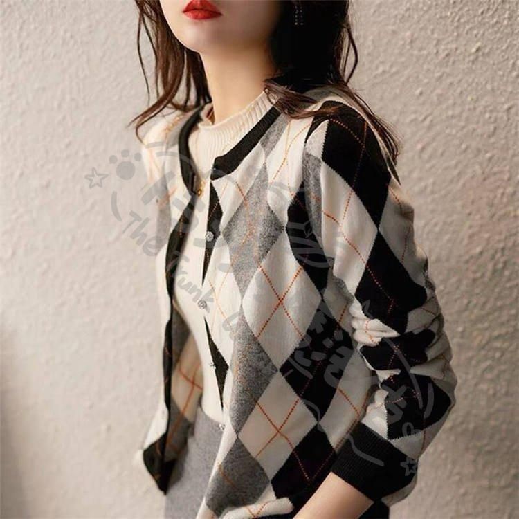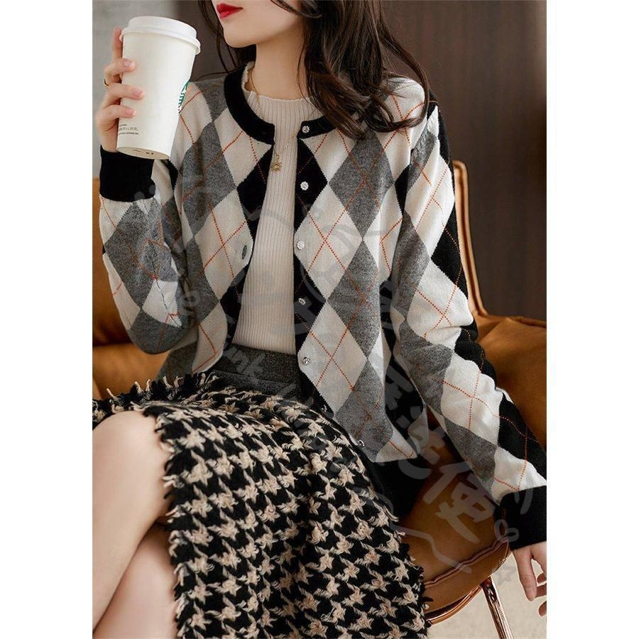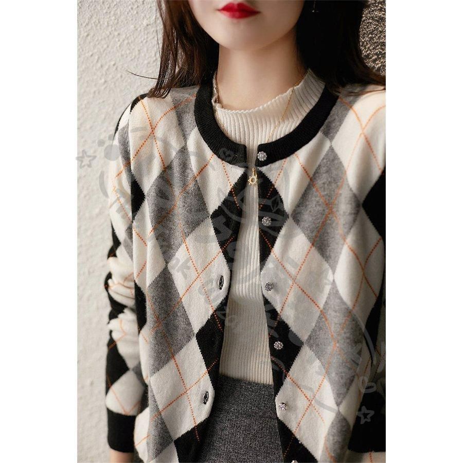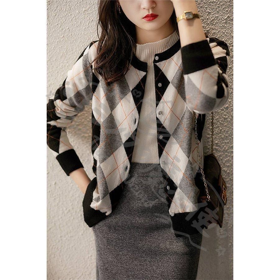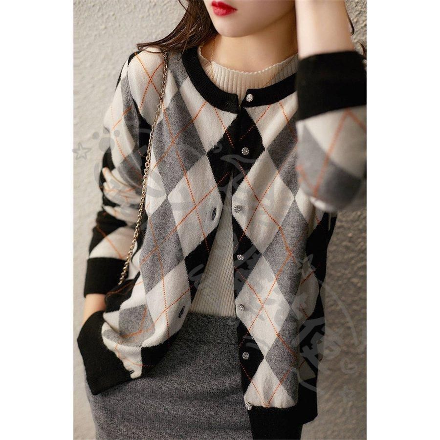 ニットカーディガン レディース 秋新作 配色 ニットソー 幾何柄 通勤 コーディガン オシャレ 40代 大人可愛い 着痩せ CCLTZH1113P115