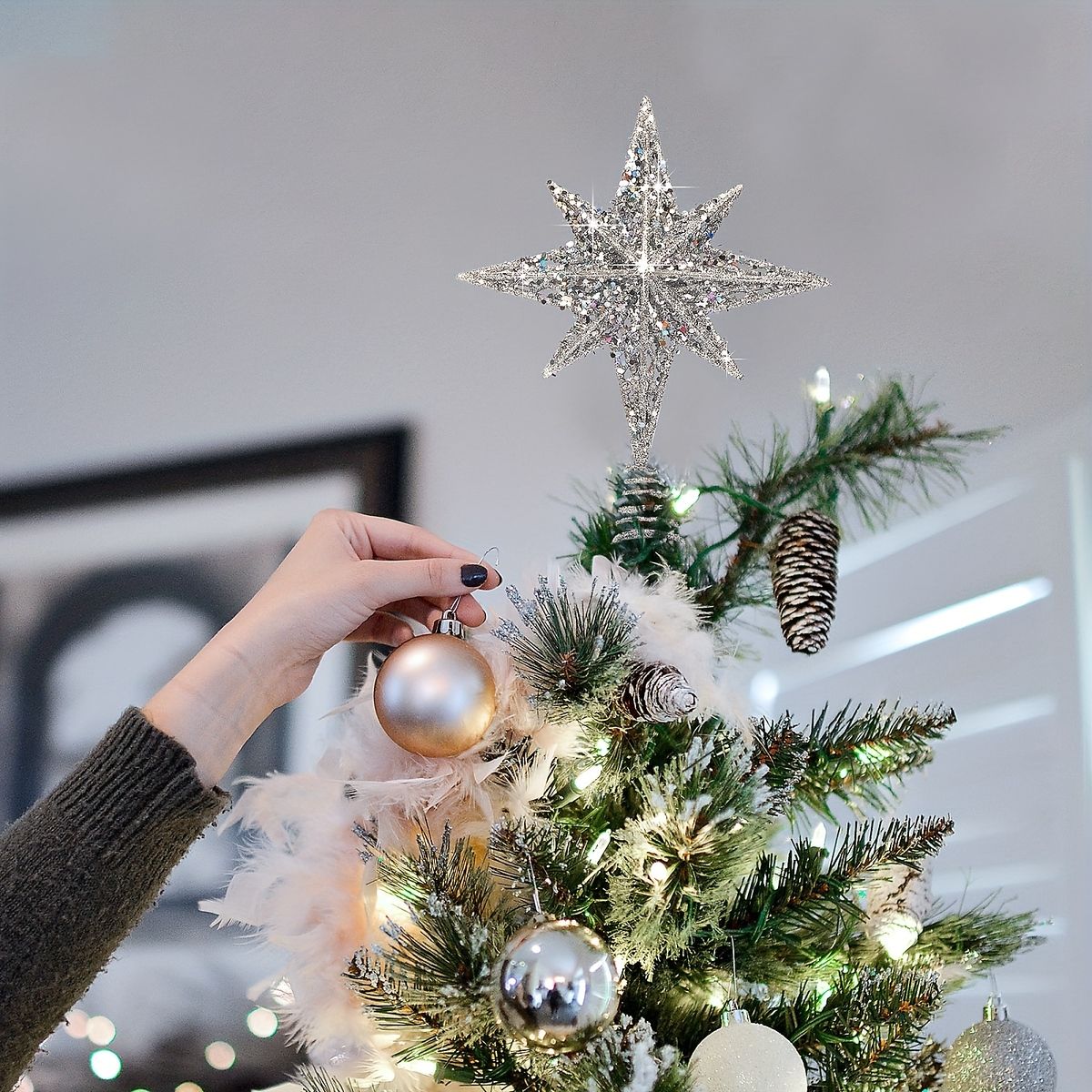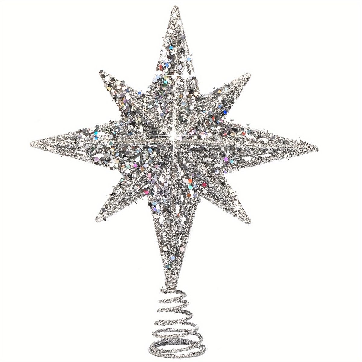 【煌めく星でクリスマスを彩る】クリスマスツリートッパースター 8インチ グリッター加工 ゴールデン/シルバー ホームパーティー ハロウィン装飾に【シルバー】