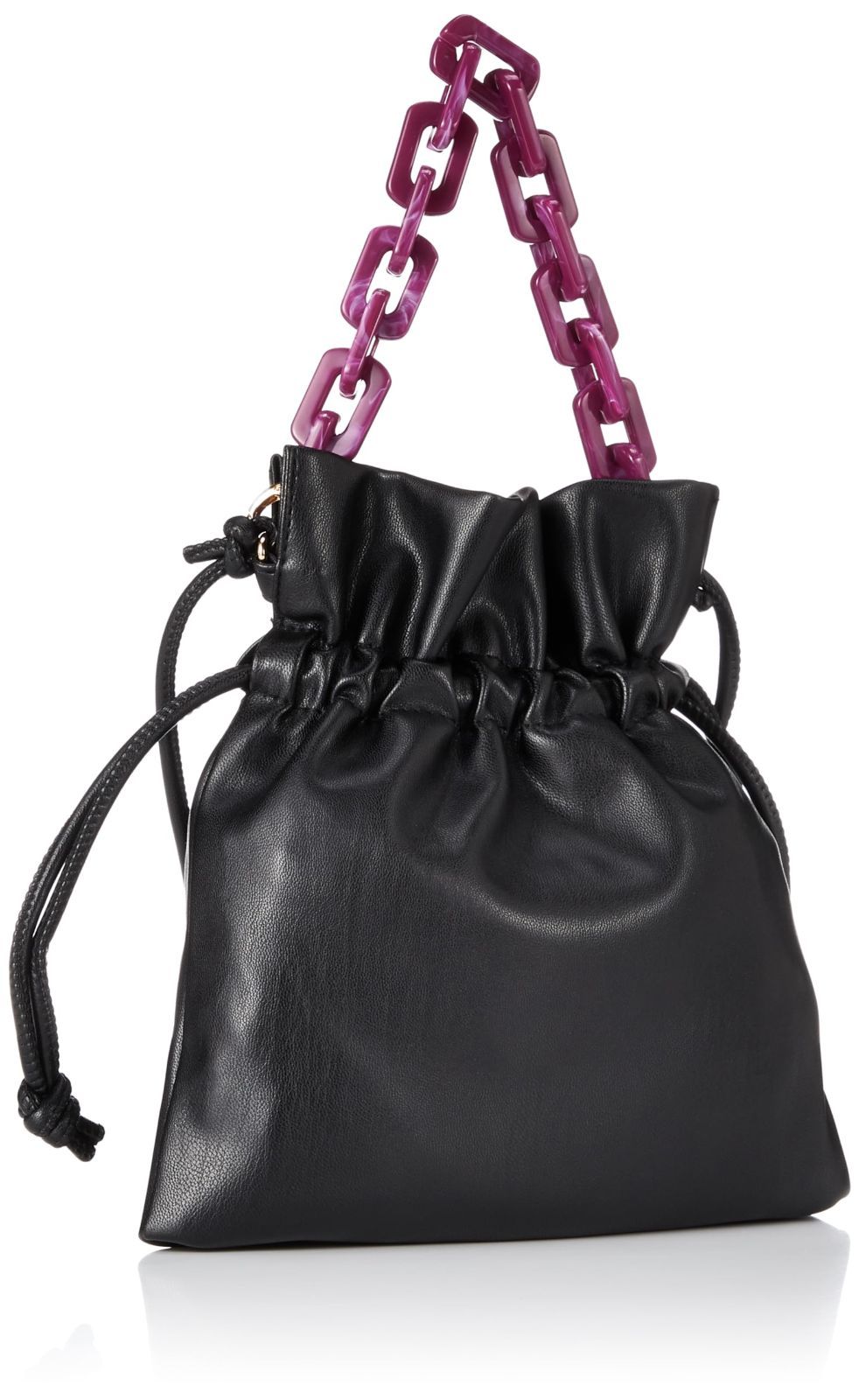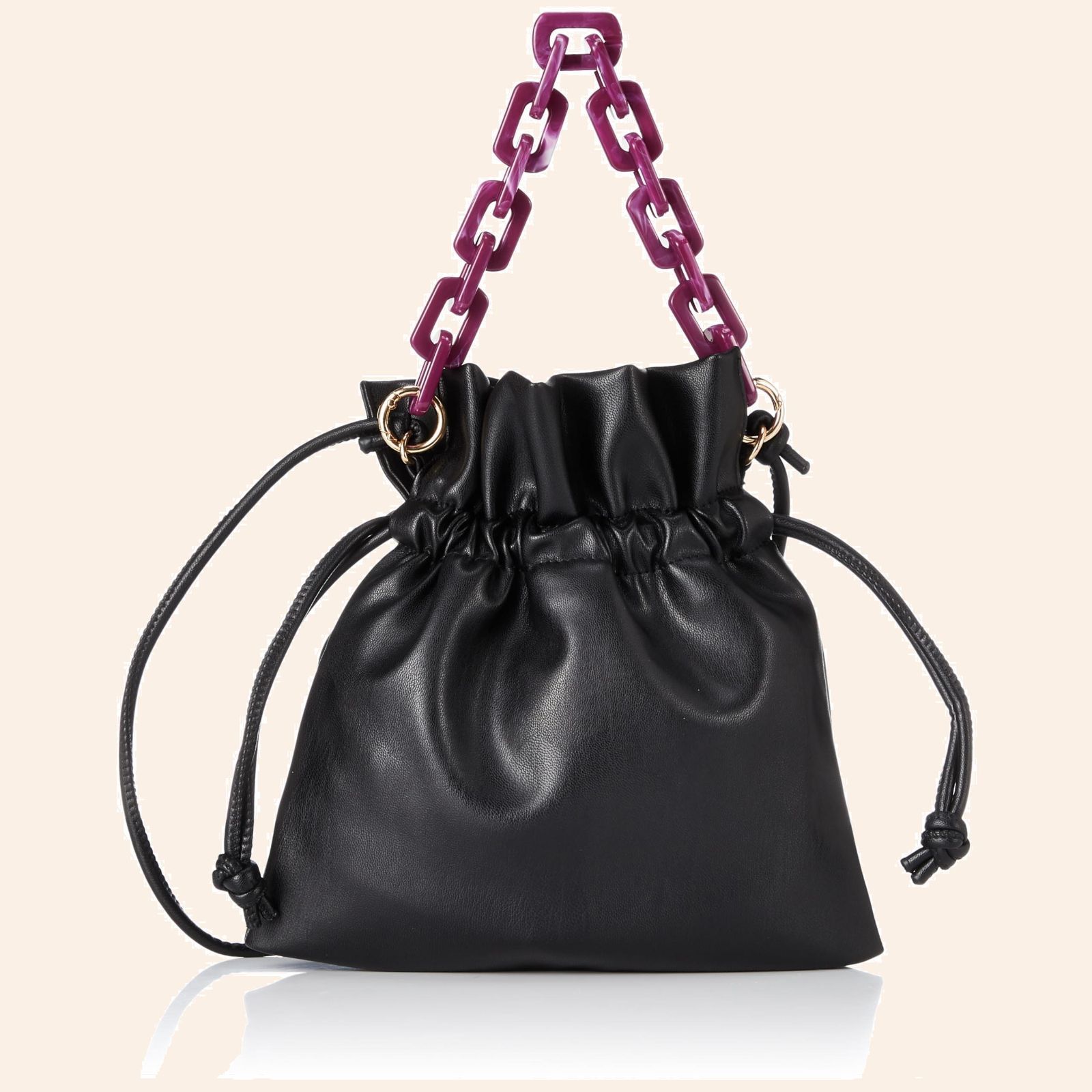 [クーコ] ハンドバッグ プラチェーンxフェイクレザー巾着バッグ