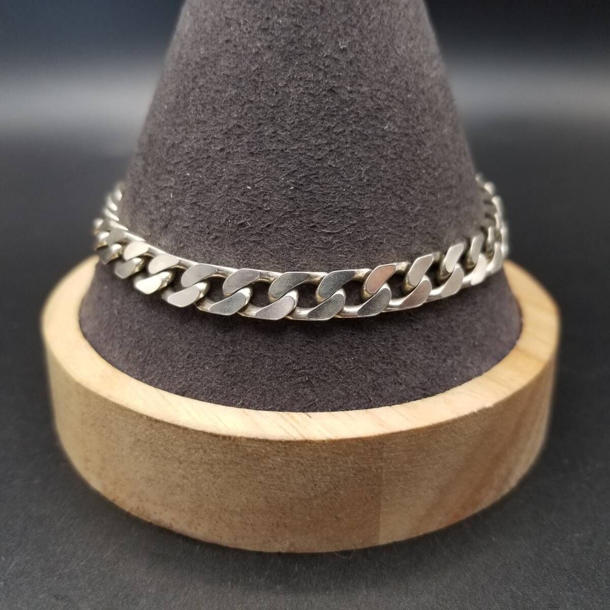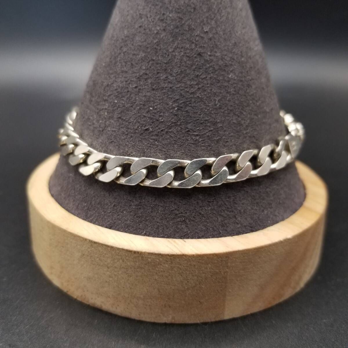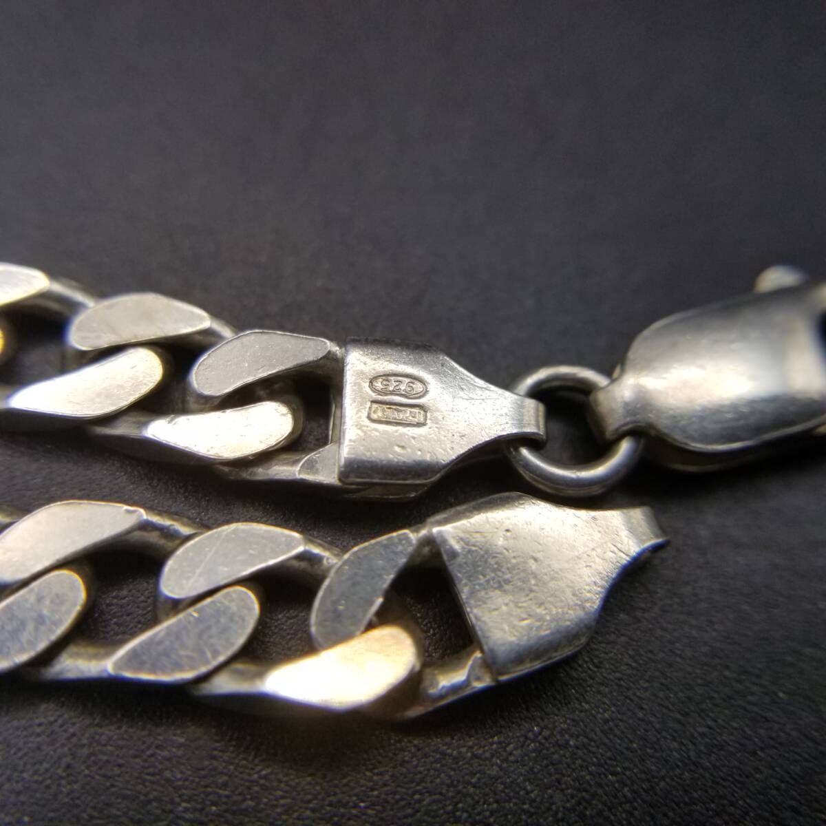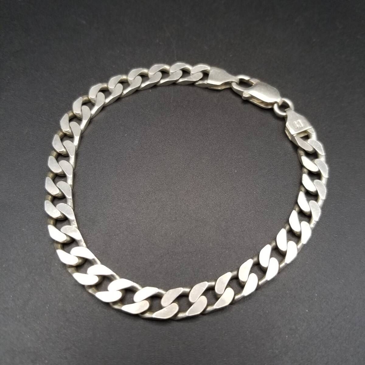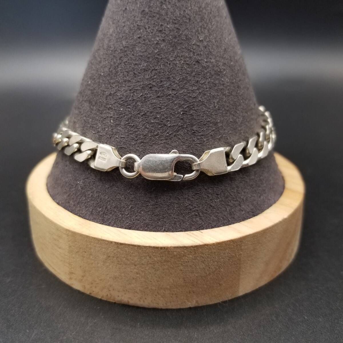 イタリア製 シンプル 喜平チェーン 925 シルバー ヴィンテージ ブレスレット 銀 英国 London Convention マーク メンズジュエリー Y23-T