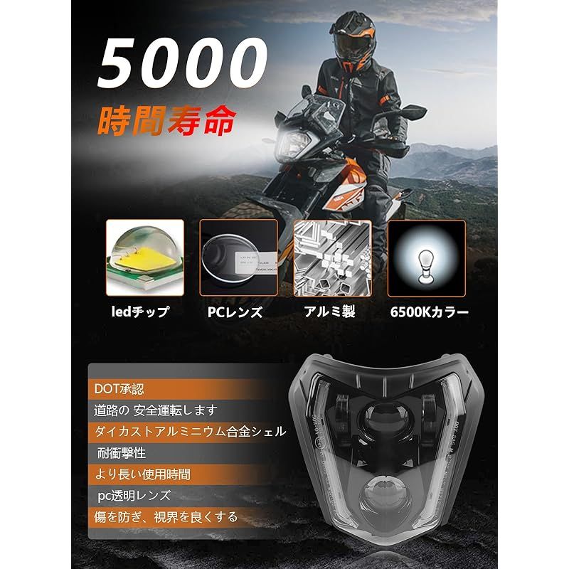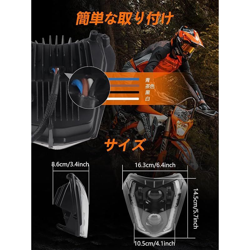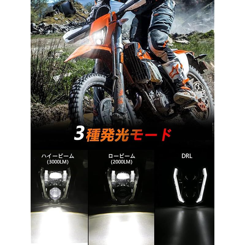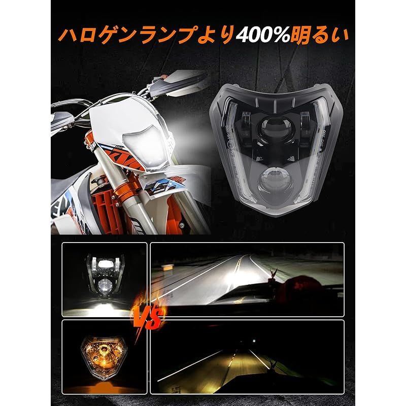 Chelhead K.T.M. ダートバイク用 LEDヘッドライト 66W 3000LM IP67防水 ハイロービーム付き 高輝度LEDチップ モトクロス ATV TC FE TE EXC XCW SXF SX 125-530 SMC R 690