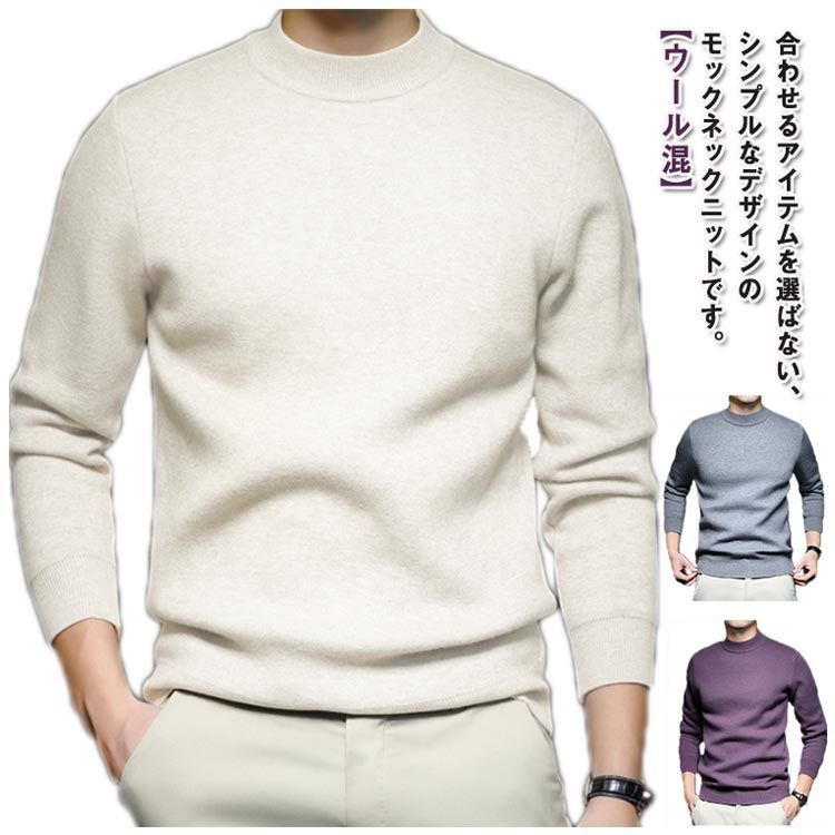 ニット セーター メンズ 秋 冬 ニットプルオーバー ハイケージ モックネック ハイネック 厚手 ニットセーター インナー ニット ウール混 防寒 暖かい スリム フィット ニットトップス 紳士服 男#zyz9859