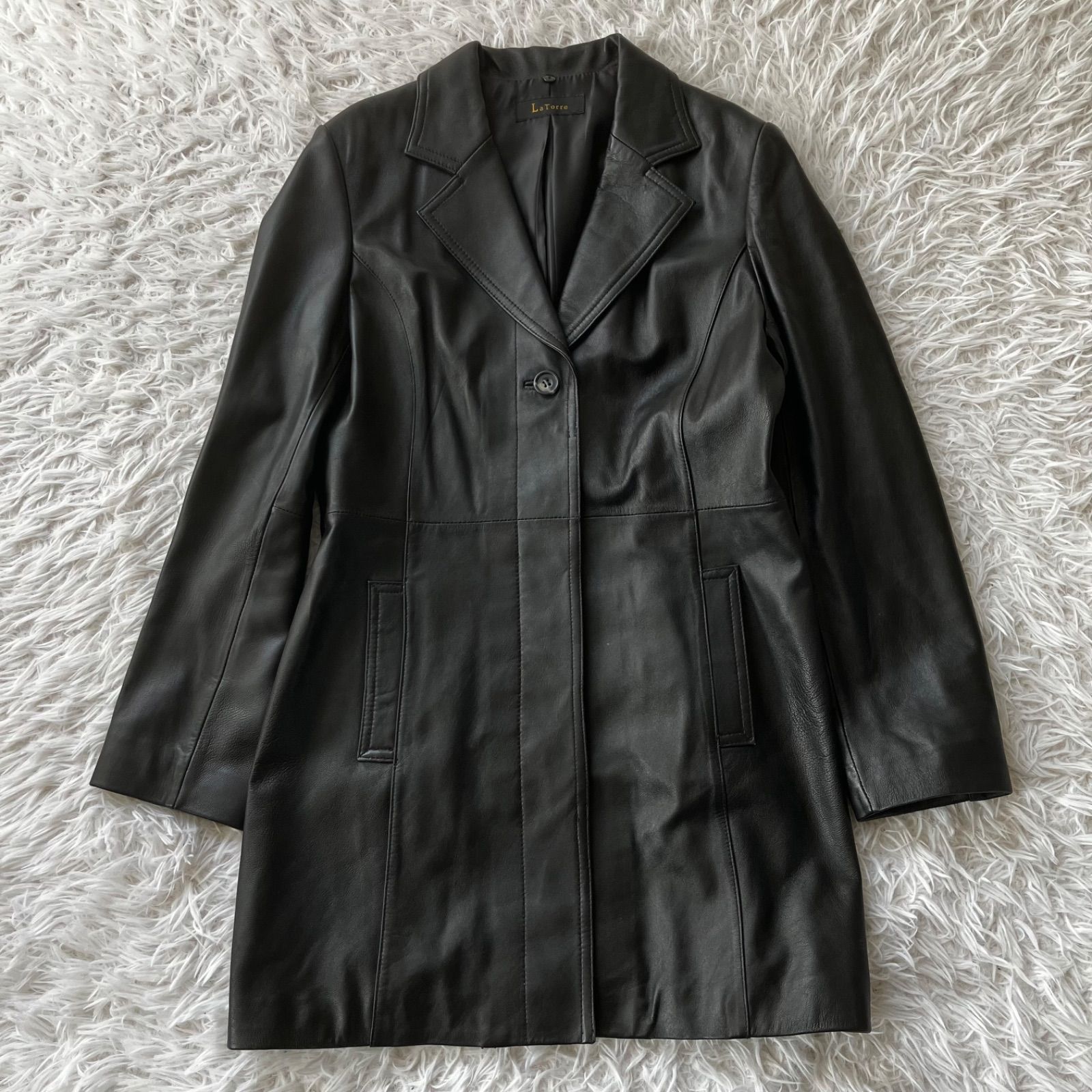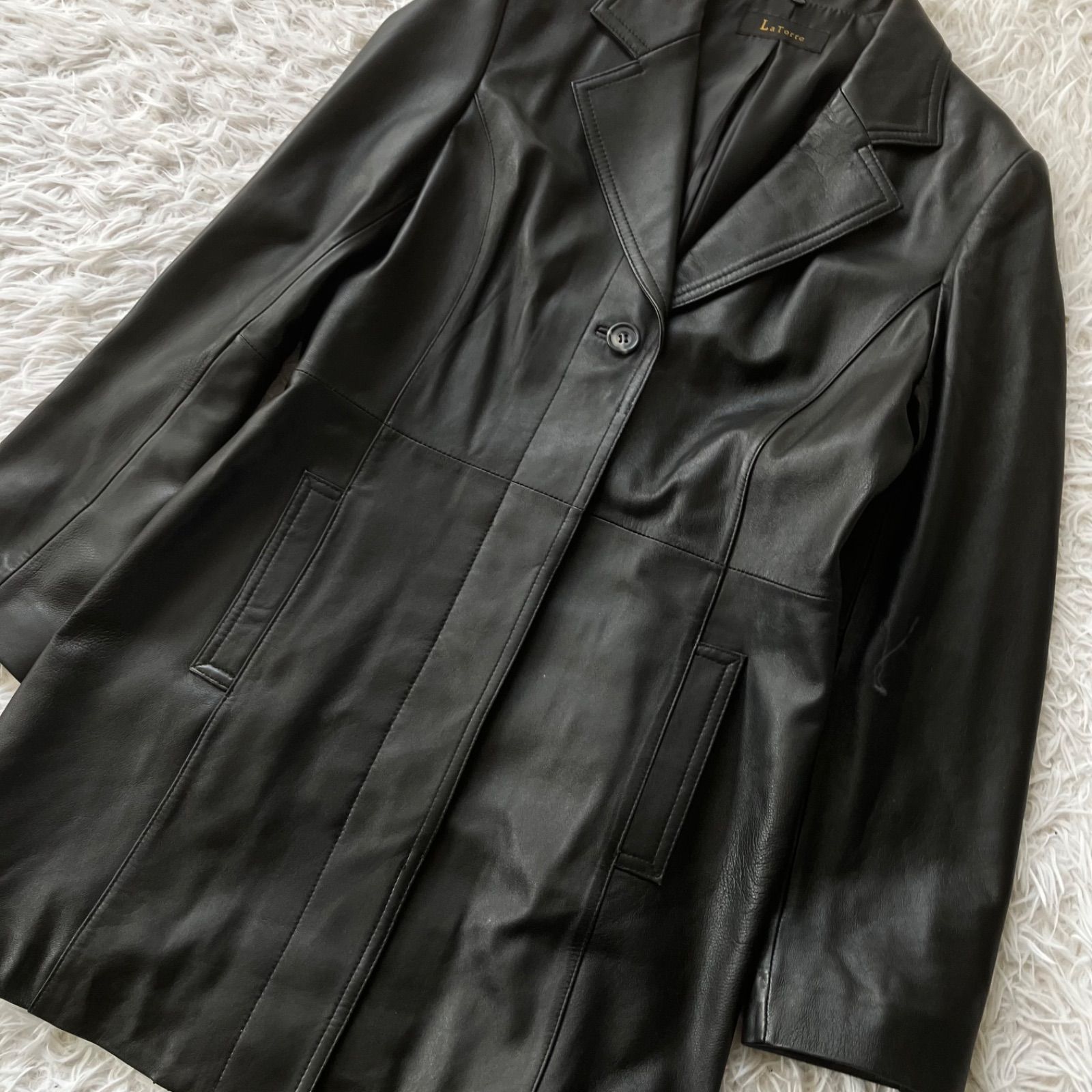 LaTorre レザージャケット 羊革 ラムレザー 本革 レザーコート ブラック ジャケット ロング 古着 4251