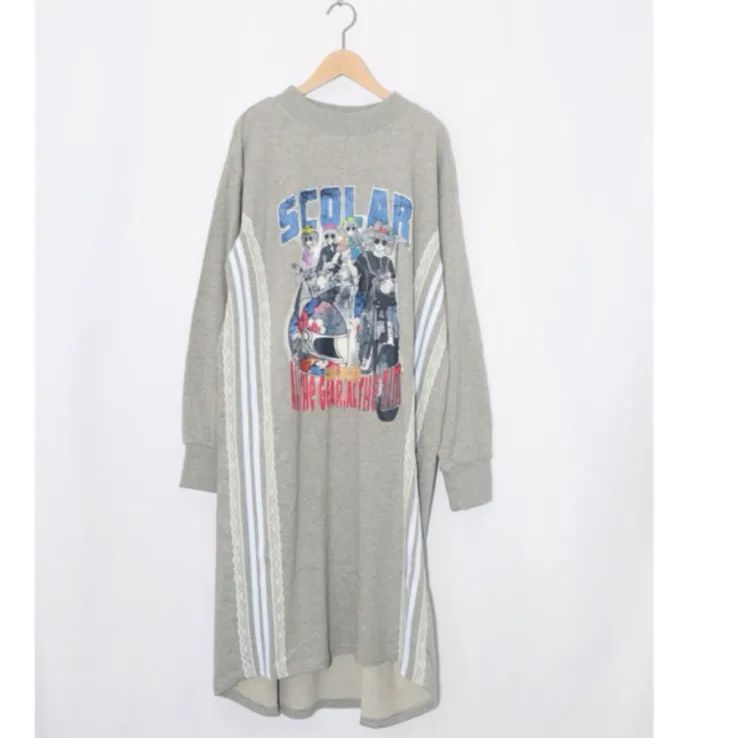 サイドのラインとレースで、スポーティーさと甘さをミックスしたワンピース。