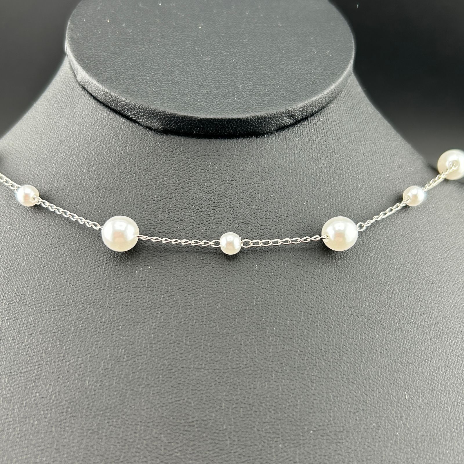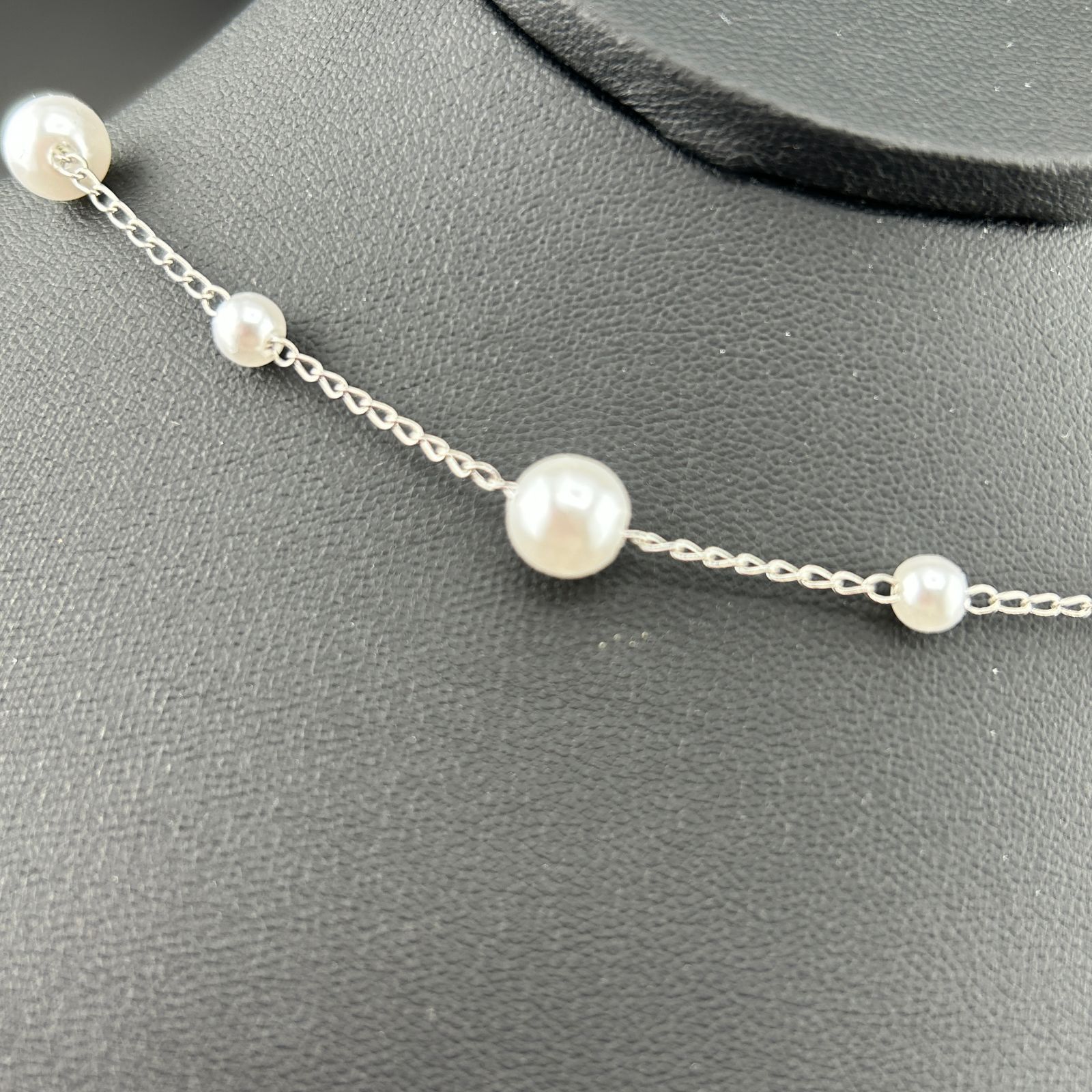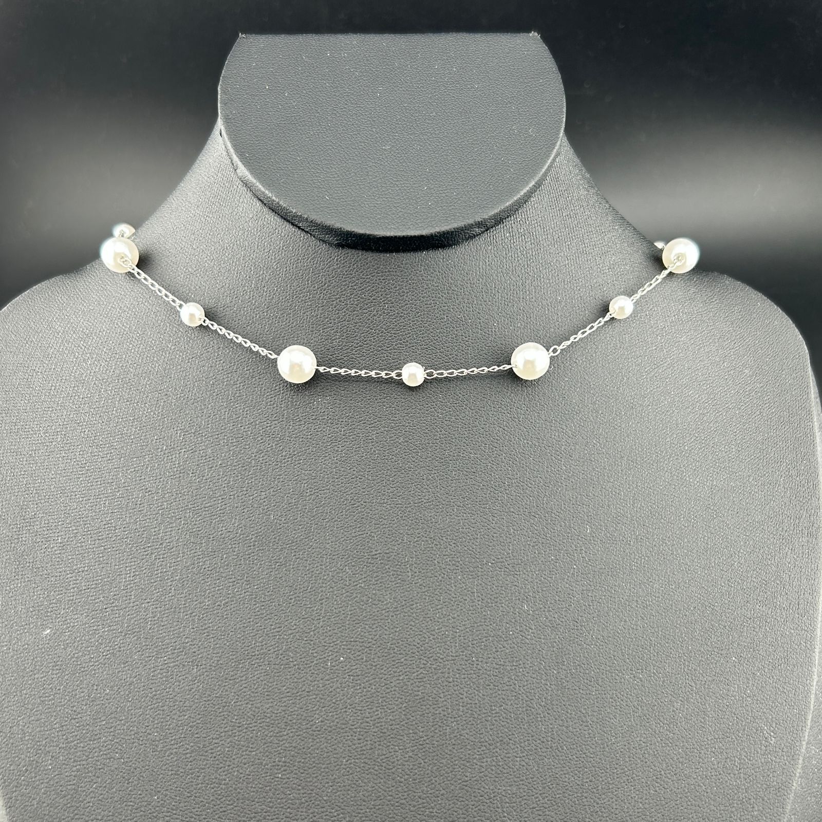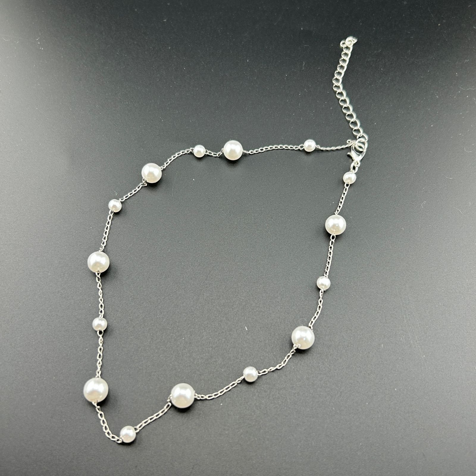 【新品】アクセサリー ネックレス シルバー×ホワイト シンプル キレイ◆