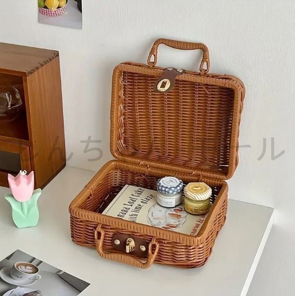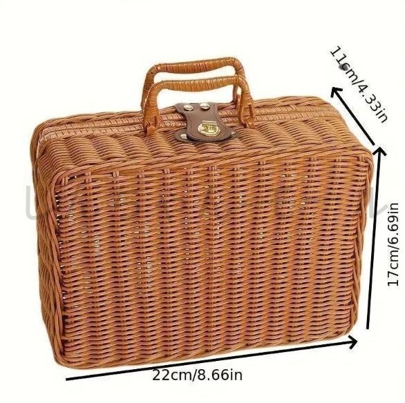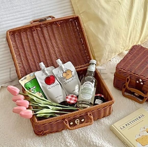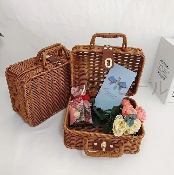 キ ファームハウスギフトバスケット ラスティックピクニック収納ボックス フェイクレザーハンドル付き 新品ヴィンテージスタイルの籐バスケ