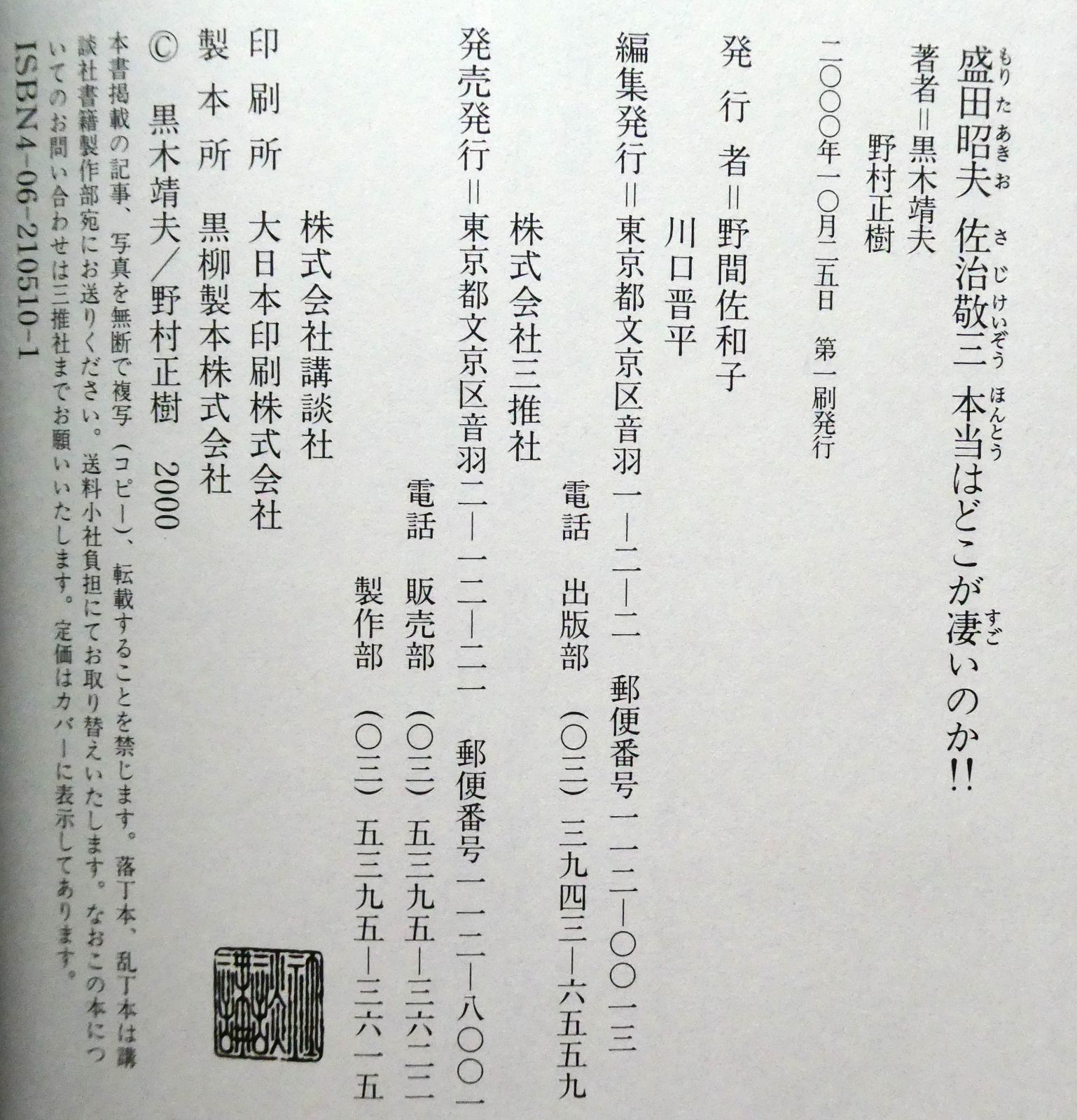 【中古】盛田昭夫 佐治敬三本当はどこが凄いのか!! これまで未公開の新事実で迫る偉大な起業家の実像と遺訓 黒木靖夫 野村正樹 三推社