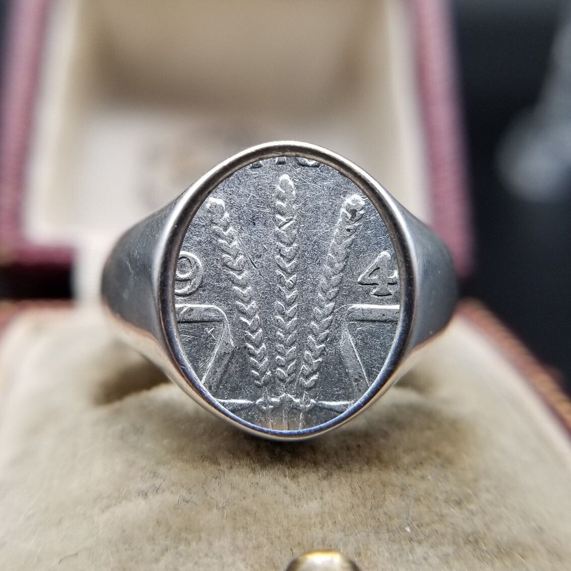 1944年 オーストラリア 3ペンス コイン シグネット リング 白銅 アンティーク 貨幣 インタリオ ビンテージ ヴィンテージ MM10