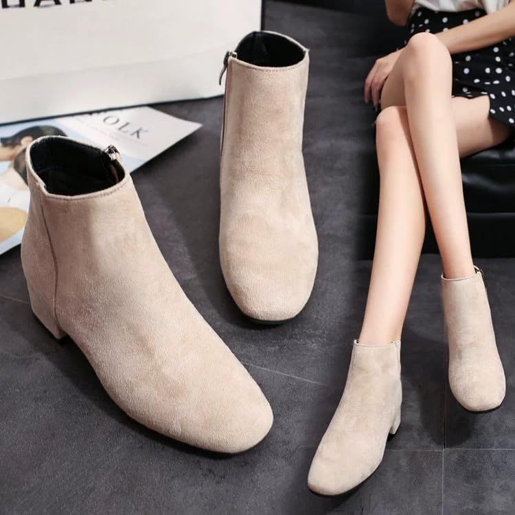 デザイン: スエード素材を使用したエレガントなショートブーツ。サイドジップ付きで着脱が簡単ですヒール: