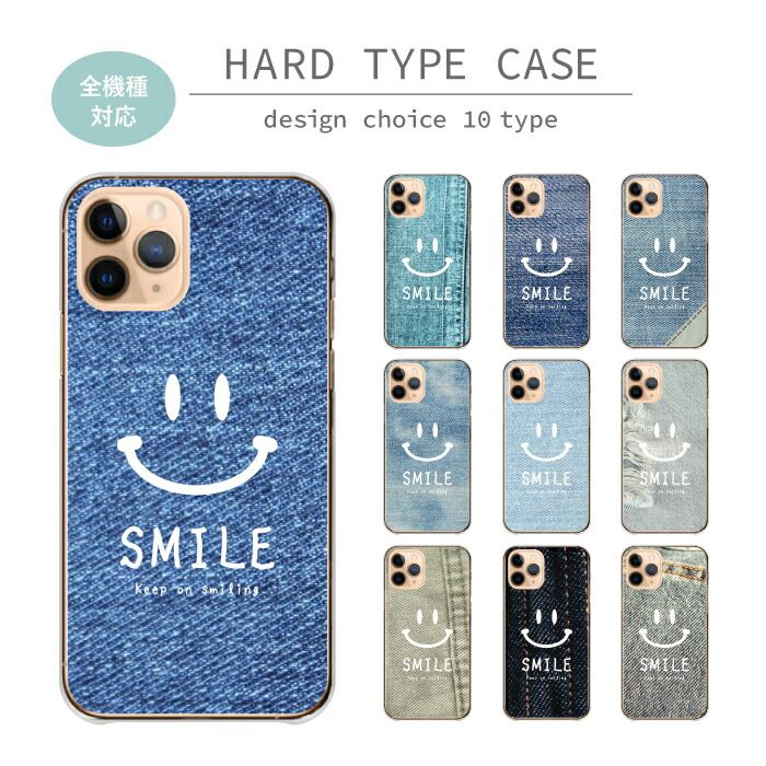 arrows N F-51C ケース カバー アローズNF-51C スマホケース ハードケース デニム柄 ジーンズ スマイル 笑顔 ニコちゃん にこ niko ステッチ クール おしゃれ シンプル カラー10