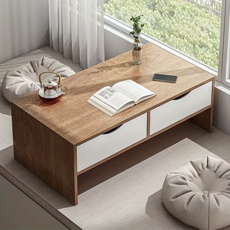 ローテーブル ミニマリスト 日本風 小さなテーブル 省スペースデザイン 窓辺用 コンパクトフロアテーブル ハードウッド素材 ミニチュア低いテーブル 簡単組み立て 引き出し付き 読書テーブル おしゃれ 一人暮らし ウォールナット