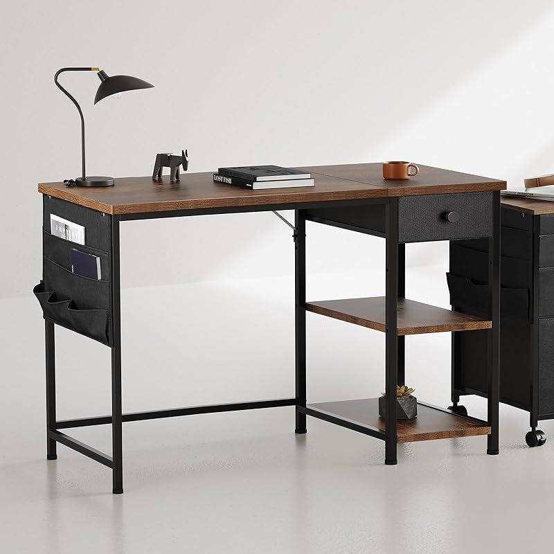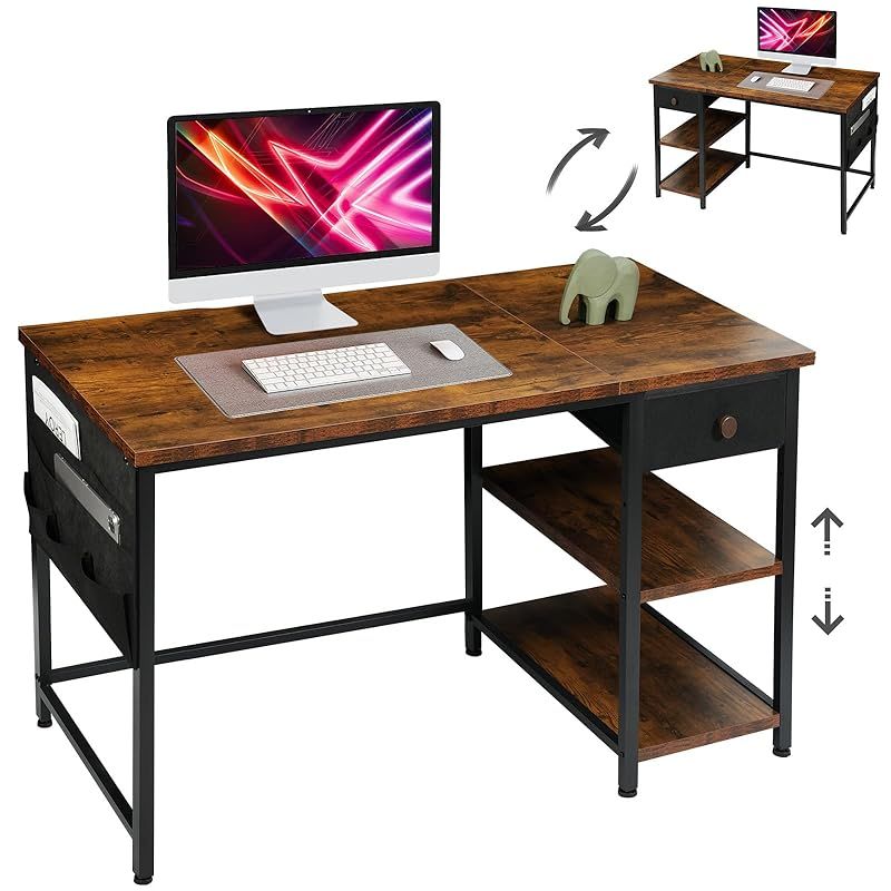 YeTom デスク パソコンデスク 机 pcデスク ?子 幅120cm computer desk ワークデスク 左右入替可 引き出し付き 勉強机 学習机 ban h?c 作業机 収納付きデスク ビンテージ 1