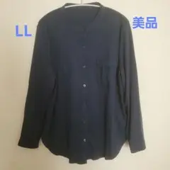 エニワイズ バンドカラー スーピマコットン混 長袖シャツチュニック LL