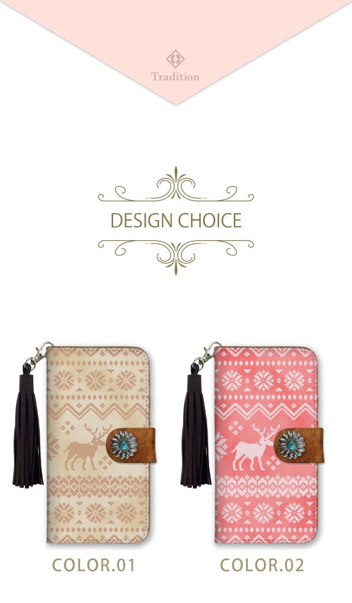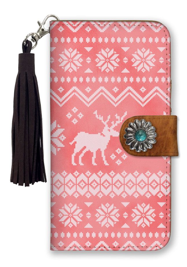 AQUOS zero2 SH-01M SHV47 SH-M13 ケース 手帳型 アクオスゼロ2 スマホケース フリンジ ストラップ付 コンチョ ノルディック柄 フェアアイル トナカイ かわいい オレンジ ピンク ネイビー カラー02