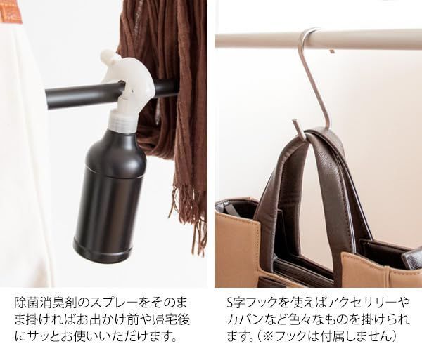 ラダーラックは幅39cmのバーが4本あり、ストールやボトムを直接かけたり、ハンガーやS字フックを使ってカバンやスカートを掛けたり色々なものが収納できます。※本製品にS字フックは付属しておりません