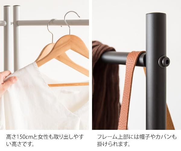 ハンガーバーは高さが136cmあり、ロングコートやワンピースなども掛けられます。オープンになっているので服が見やすく、お気に入りを飾って収納できます。