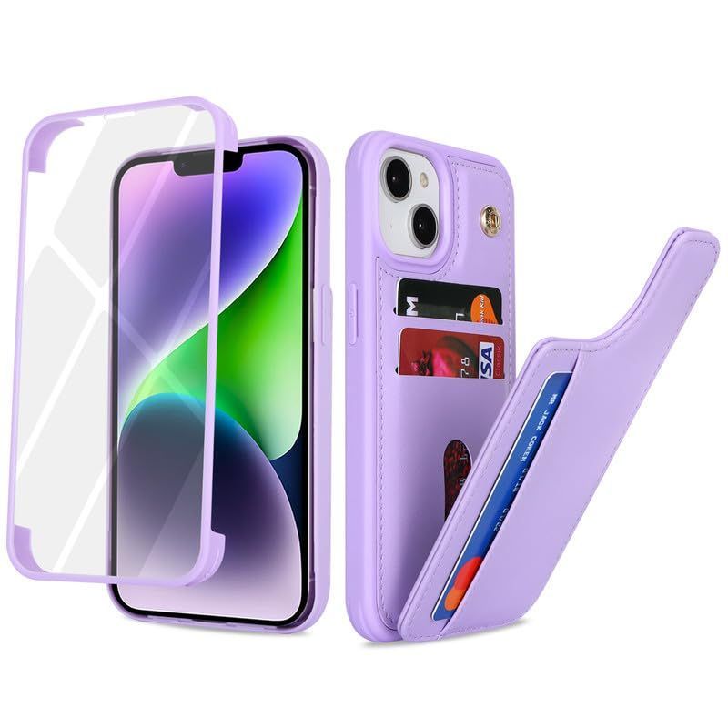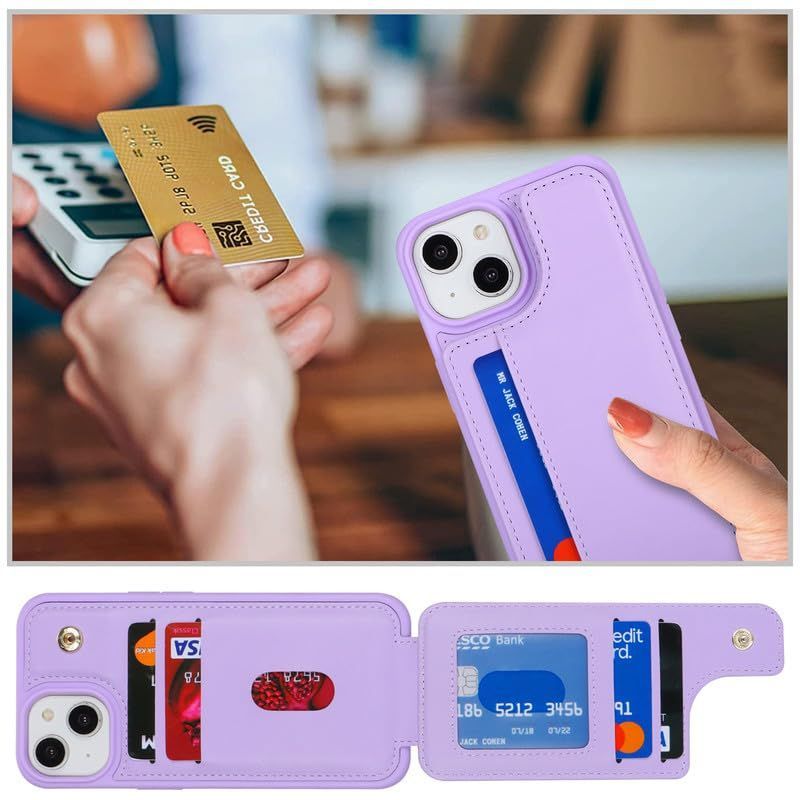 Lipvina iPhone 13 / 14 ケース 強化ガラスで全面保護 アイフォン13/14用ケース、iPhone13 / 14 ケース、カード収納、背面ケース手帳型、13 / 14手帳、iPhone13 / 14 case、高級PU革、耐衝撃、滑り防止、携帯カバー、アイフォン13 / 14ケース、全面保護、手触りが良い、人気、上質、6.1インチ対応(紫)