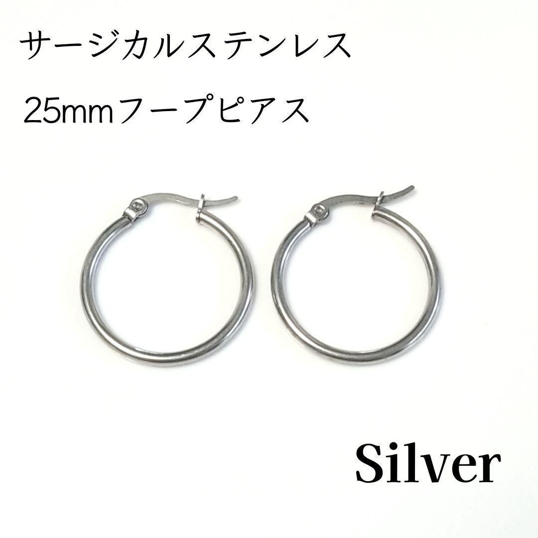 商品名:25mm フープピアス カラー:シルバー サイズ:直径約25mm、ピン太0.7×1mm 仕様:サージカルステンレス 数量:2個(1pair) ※サージカルステンレスは医療器具にも使われており変色しにくく、錆にも強いため、低刺激でアレルギーが出にくいとされています。 ★フープピアスは一点毎に開閉確認を行っておりますが、万が一到着時に固い/緩い等ございましたら、ペンチなどで留め具部分の開き具合をご調整ください。 ========================= ★ご購入後のメッセージは不要です。 ★領収書/納品書/インボイスの発行は対応しておりません。 お支払い方法に準じた明細をご利用ください。 ★複数ご希望の場合はお手数ですが個別にお手続きください。発送は同梱致します。 ★複数ご注文によるお値引きは行っておりません。 ★原則、 21時頃までのご購入で翌日発送致します。天候等により翌々日に発送する場合もございます。 ★安価でご提供するため、最安発送を取り入れております。 そのため簡易包装(小袋、直封筒)での梱包となりますことご了承ください。 ★発送は普通郵便となります。到着までは【土日祝日を除き3~5日】程掛かります。  遠隔地や天候により更にお日にちがかかる場合もございますので、予めご了承ください。 ★本商品は海外製となります。バリ、欠け、擦り傷、変色、製造過程における異物混入等ある場合があります。またお色味についても製造ロットにより変化いたします。 検品でできる限り不良品は除いておりますが予めご了承ください ★その他詳しくはショップ情報をご確認ください