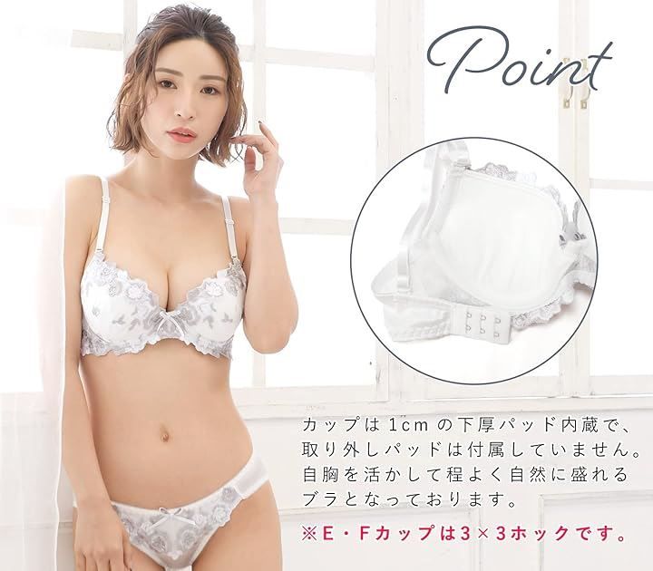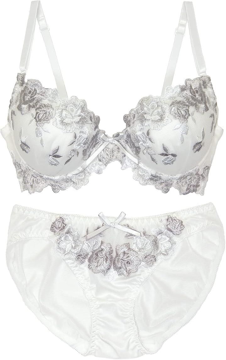 Laulea Akoakoa(ラウレアアコアコア) レディース ブラジャー ショーツ 勝負 下着 上下 セット 女性 脇肉 脇高 セクシー(ホワイト, D80.)