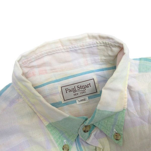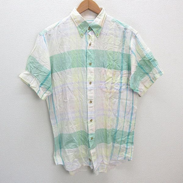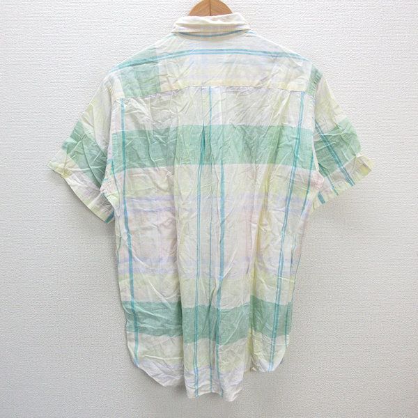 a■ポール・スチュアート/POUL STUART マドラスチェック 半袖BDシャツ【L】黄系/MENS/115【中古】