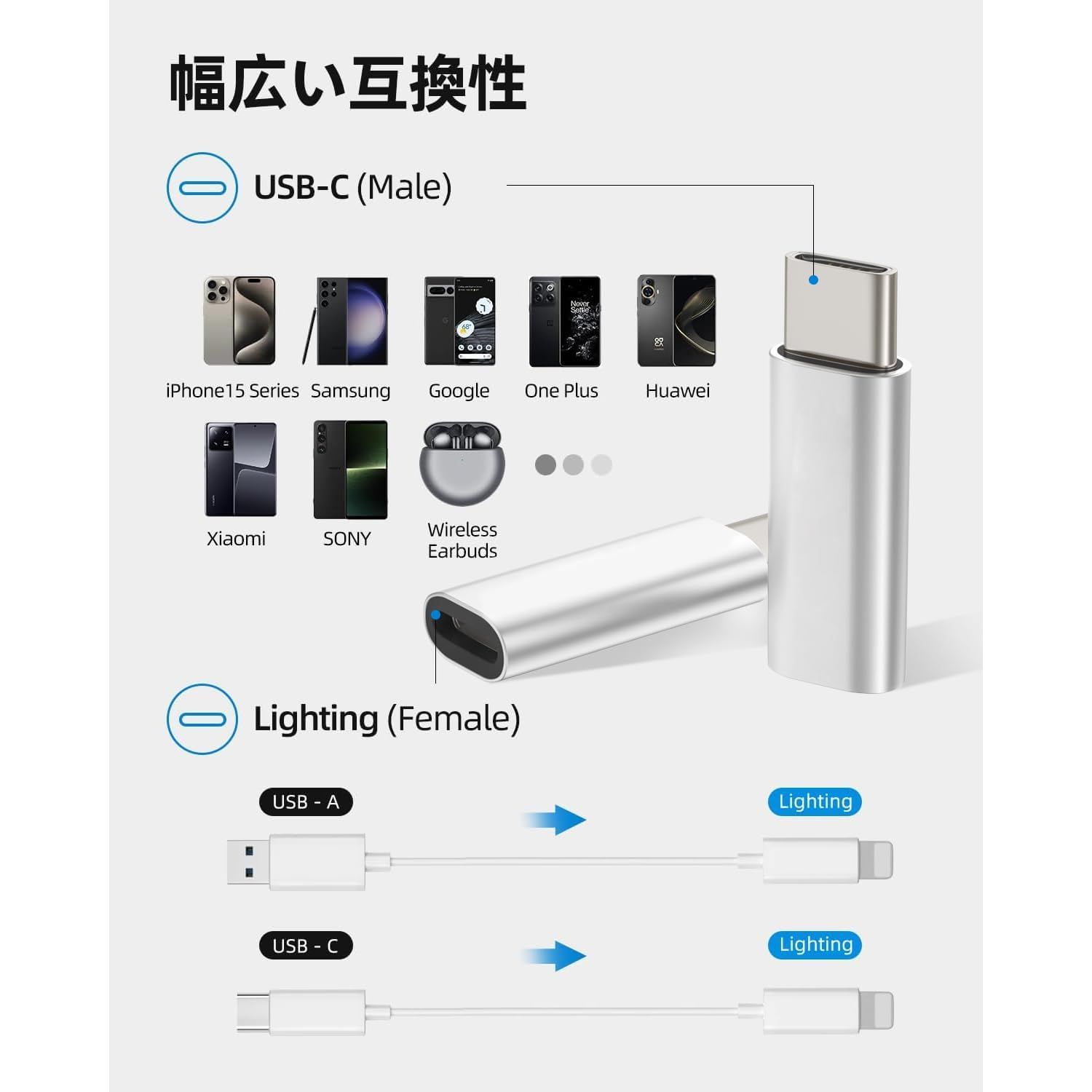 「ライトニングから タイプCへ変換」: ライトニングケーブルあるいは充電器を本変換機器とつながり、オスタイプCプラグからUSB-C機器(タブレット/スマートフォン)と接続すれば 直ちに充電を実現できます(ご注意:iOS Pad Pro 2018/iOS Phone からの画像、音楽出力できません。急速充電非対応))。USB-C採用のiPhone 16 15シリーズも充電可能です