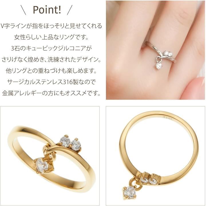 素材 サージカルステンレス316L製 キュービックジルコニア サイズ リング幅:約2.0mm リング厚み:約2.0mm ストーン直径:(小)約2.0mm、(大)約3.0mm
