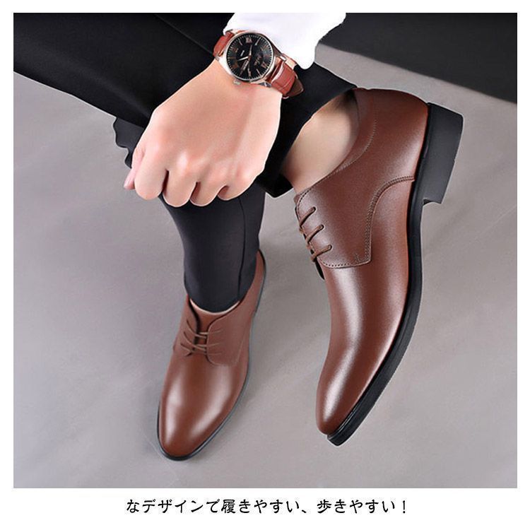 高品質な合成皮革を使用し、本革に匹敵する滑らかな質感とシャインを持たせつつ、汚れがついた場合は柔らかい布で拭くだけで簡単に清掃できます。クラシックな紳士靴デザインと相まって、ビジネスミーティングやフォーマルイベントなど、様々な改まった場面で品格ある印象を与えられます。?
