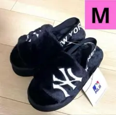 MLB NY厚底サンダル ニューヨーク・ヤンキース ファーサンダル 黒 M