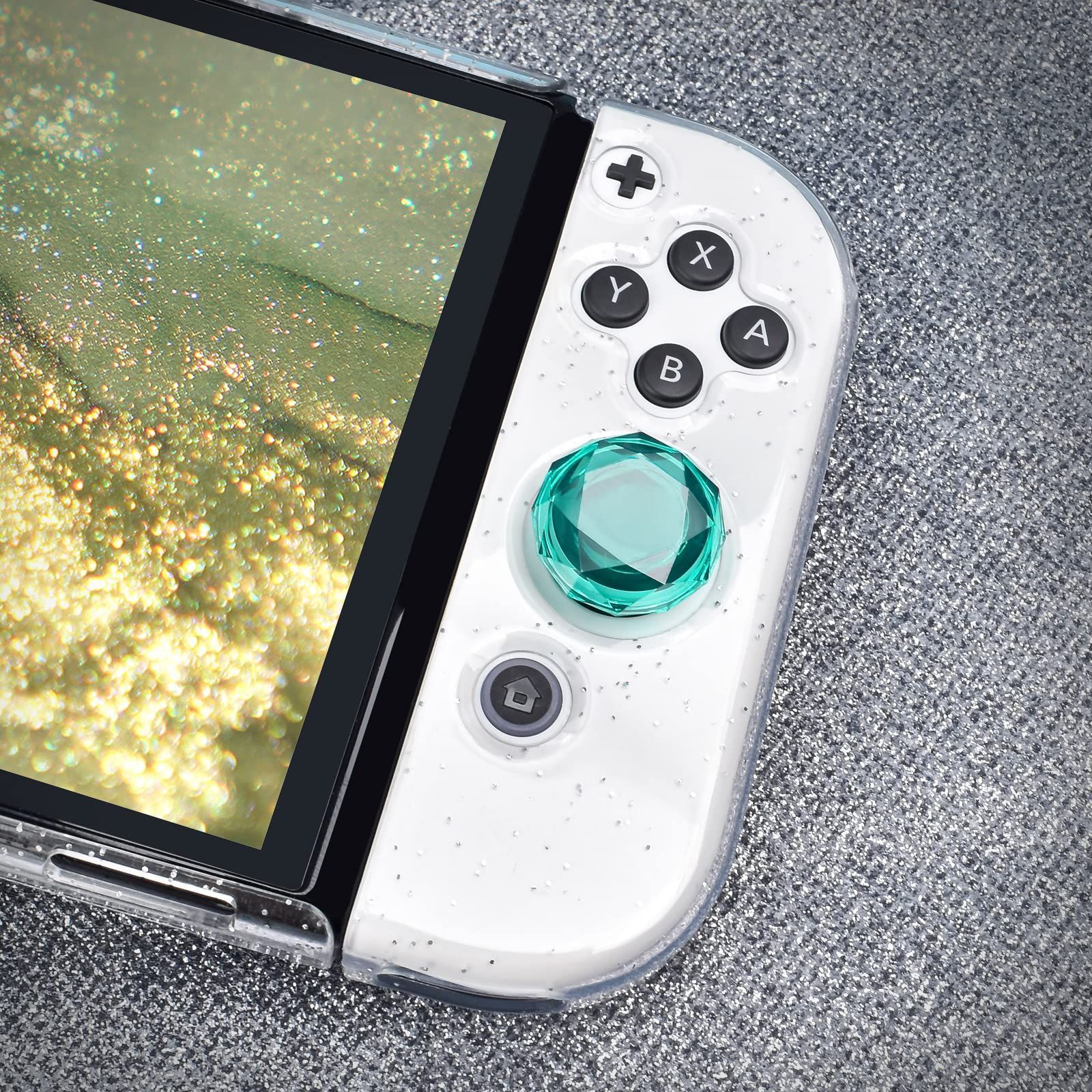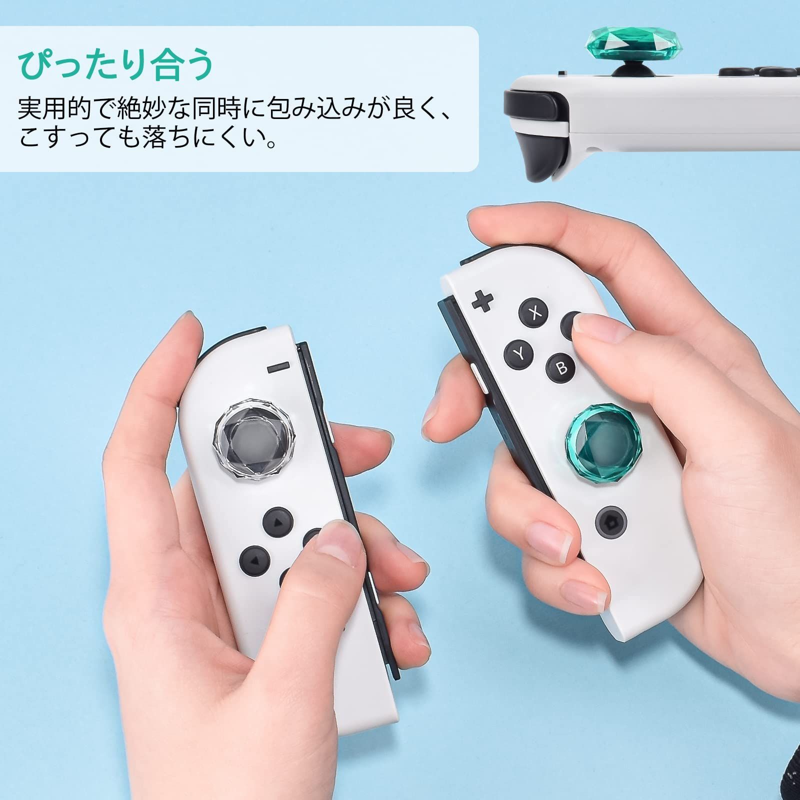 DLseego Nintendo Switch/Switch Lite/Switch Oled 対応 Joy-Con 親指グリップキャップ アナログスティックカバー シリコン コントロール キャップ ジョイコンスティックカバー ダイヤモンドカット 可愛い 保護カバー (4個セット)緑+白い