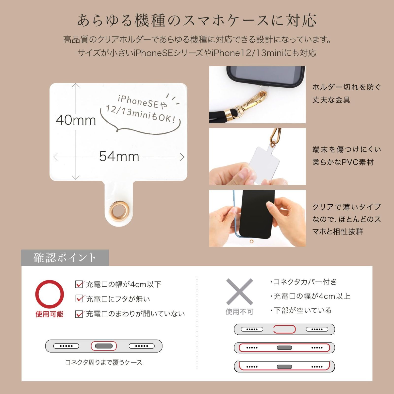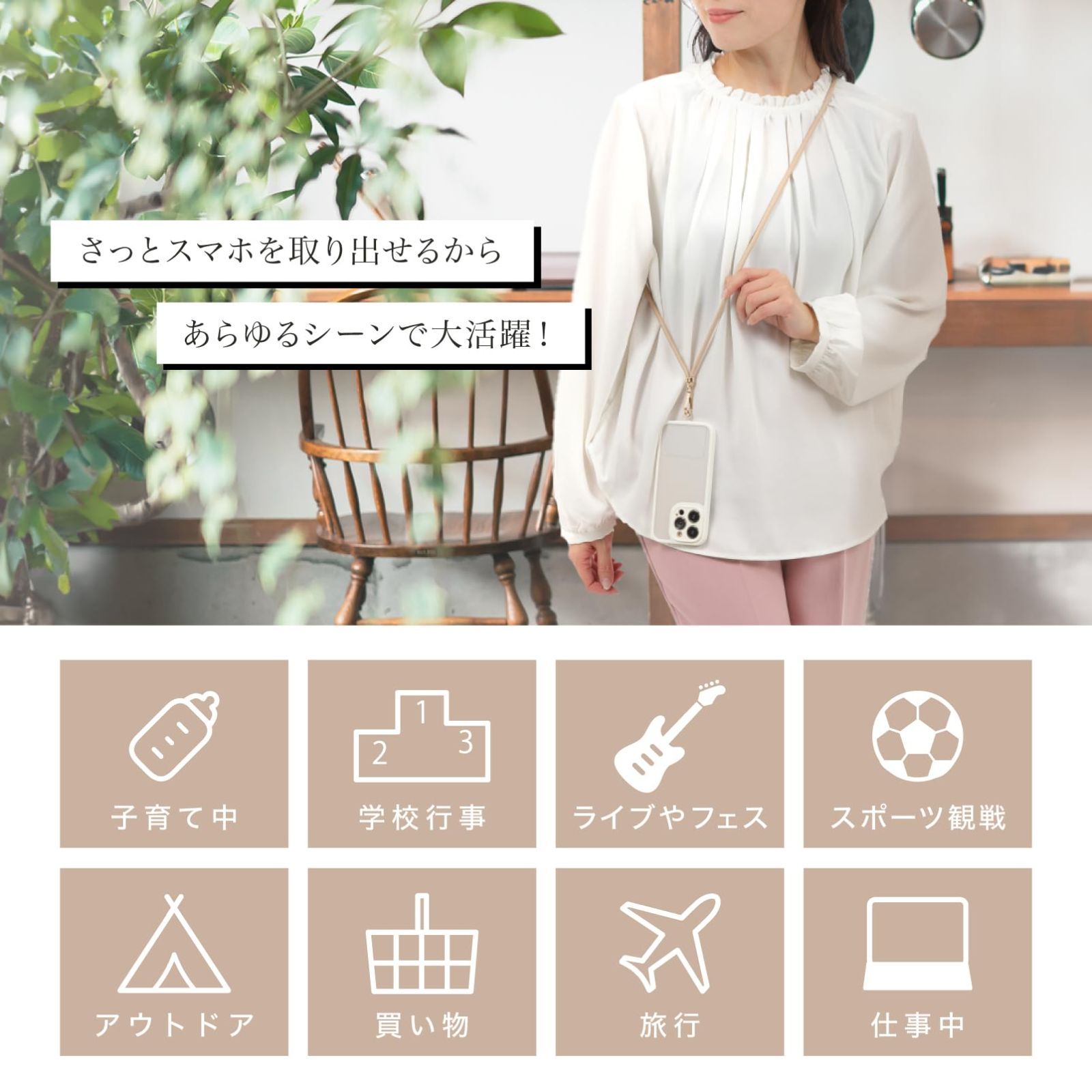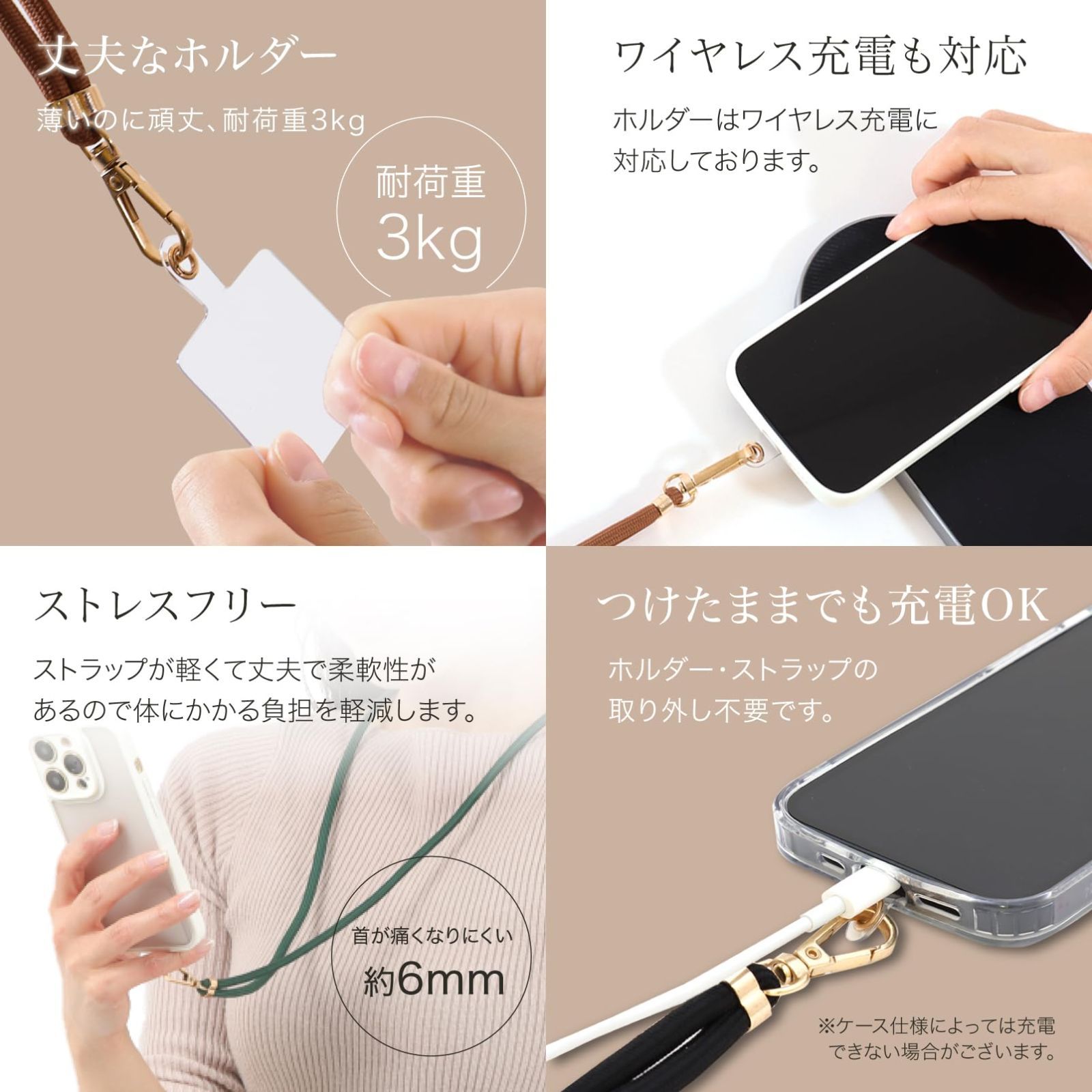 ご覧いただきありがとうございます。 当店では他サイトにも商品を販売しているため まれに売り切れや取り寄せ中となる場合がありますがご了承ください。 [ベルモンド] スマホ ショルダーストラップ スマホストラップ ネックストラップ B0802 光沢ゴールド金具 色:#03_グレイッシュベージュ 【セット内容】ストラップ(紐)×1、ストラップホルダー×1【ストラップ仕様】カラー:#03_グレイッシュベージュ紐とゴールド金具、ストラップの長さ:約75cm、ホルダーのサイズ(透明シート):約W54mm×H40mm×D0.7mm、耐荷重:3kgまで対応。miniサイズからビッグサイズまで、男女兼用ですべてのスマートフォンに対応したサイズとなっております。 【特徴】スマホケースにホルダーを挟むだけ!ストラップ紐はいつでも簡単に取り外し可能です。軽量で程よい太さのストラップ紐は、首掛け・肩掛け・斜め掛け、どの使い方でも快適に使用可能。金具は落ち着いた色味のゴールドなので目立ちすぎることはありません。「~いつでも一緒~ OTOMOストラップ」は、レディース(女性)だけでなくメンズ(男性)にも活用していただきやすいデザインです。スーツやオフィスカジュアルにもマッチします。 【様々なシーンで大活躍】カバンからスマホを取り出す手間がなくなり両手が自由に!コンビニでのスマホ決済、お子様を連れてのお買い物、ライブやフェス、アウトドア、スポーツ観戦、運動会などの学校行事、仕事中…どんな場面でも活躍します!老若男女、性別や世代を問わずお使いいただけます。 最後までご確認頂き誠にありがとうございました。 上記をご確認頂き、ご購入いただけましたら幸いです。 何かご不明な点がございましたらお気軽にメッセージからお問い合わせ下さい。