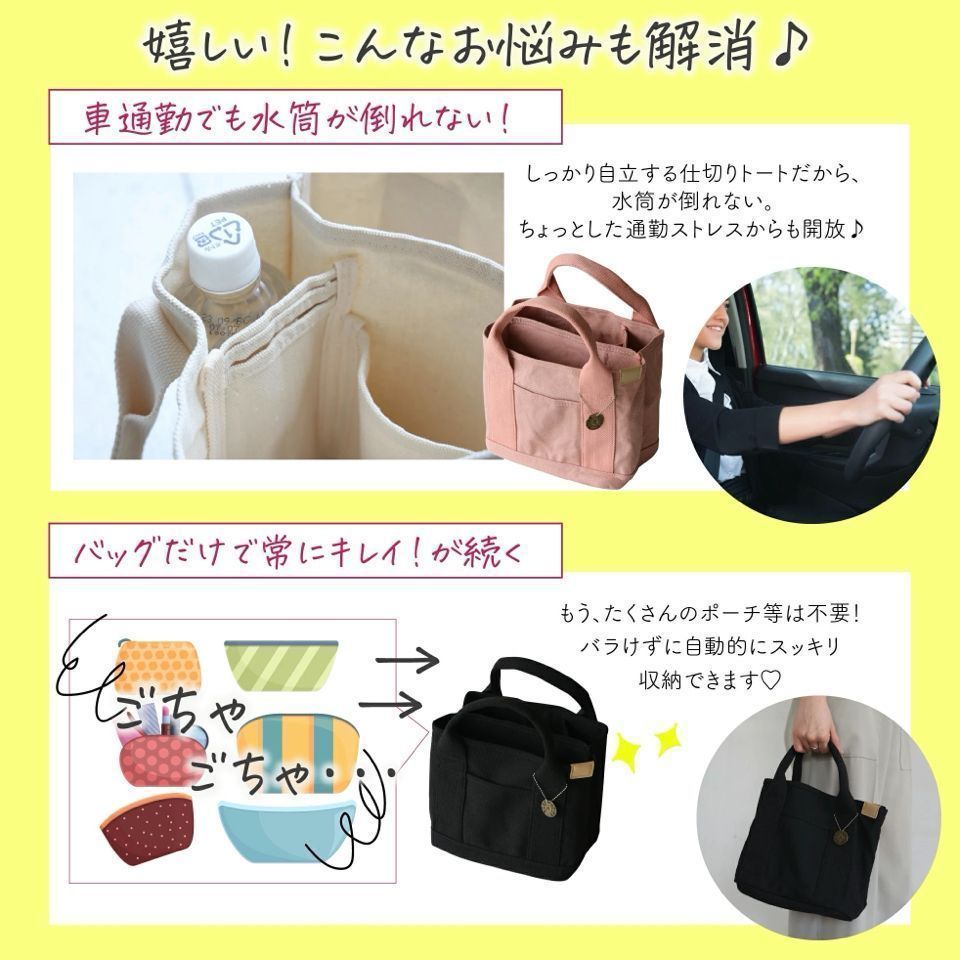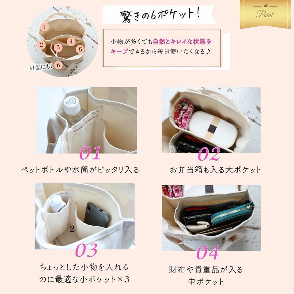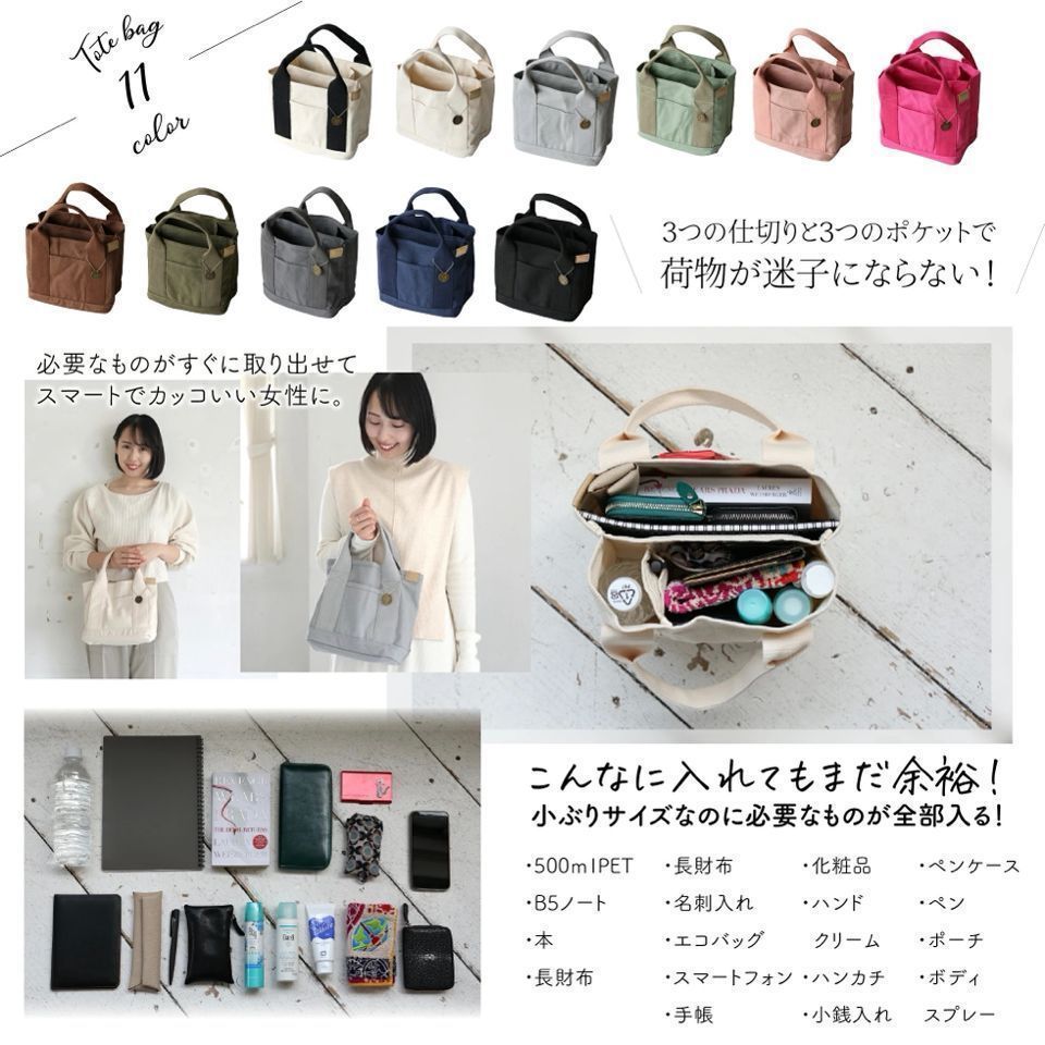 トートバッグ レディース キャンバス 仕切り ミニ トート 自立 マチ広 軽量 小さめ キャンパス バッグインバッグ マザーズバッグ シンプル 無地 収納 軽い ポケット美収納 B5 ノート カラーバリエーション 丈夫 お弁当箱 ペットボトル 仕切りあり 仕切り付き チャーム付き