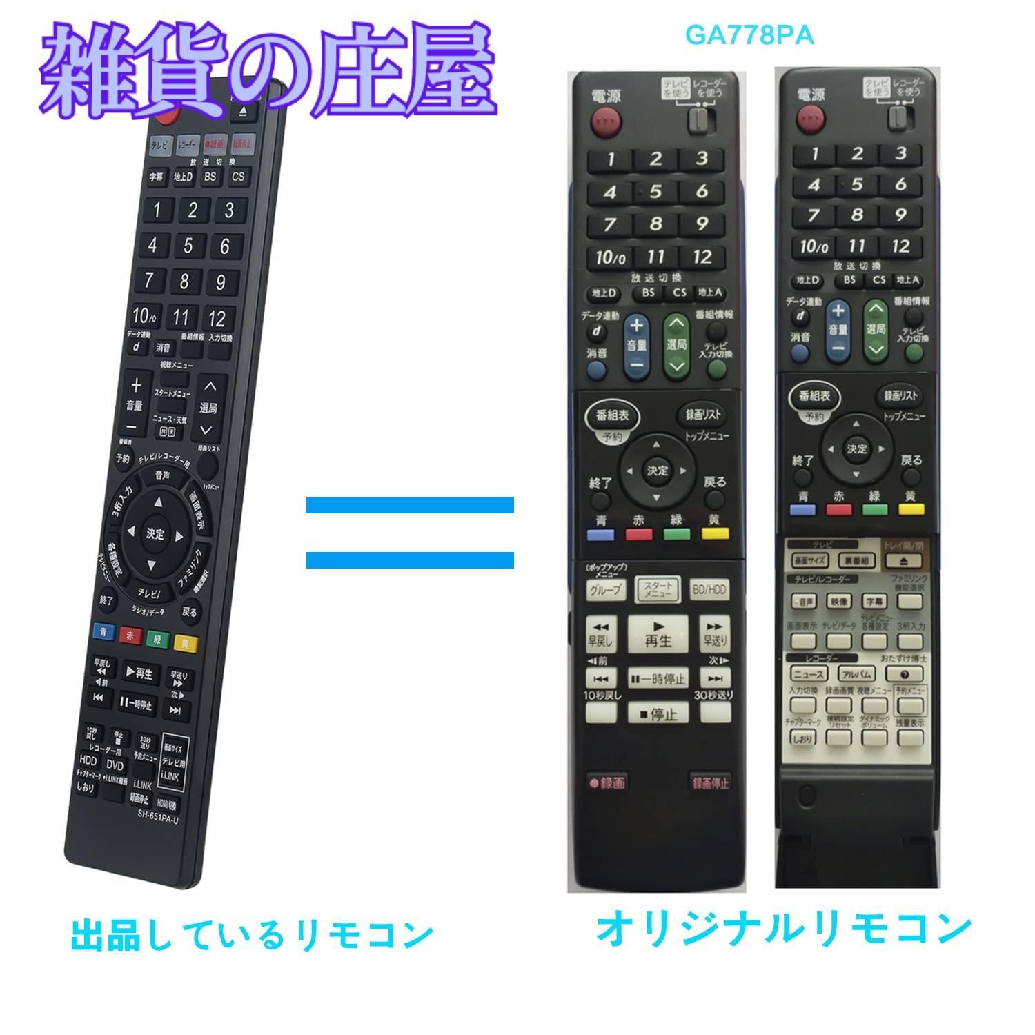 【激安セール】DVD用リモコン fit for シャープ GA651PA GA616PA GA778PA GA688PA GA769PA GA617PA GA652PA GA558PA GA618PA DV-AC82 DV-AC72 DV-AC75 BD-HD