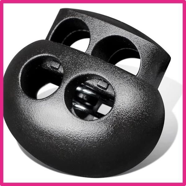 ブラック_20個 1/2/5/10/20/50個セットあり、スプリングコードストッパー 2つ穴 2本紐用 丸型 穴径約6mm (黒,20個)