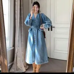 ブラウン・ブルー チェック柄 Aラインシャツワンピース