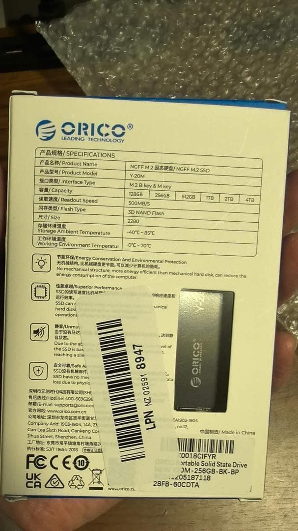 ORICO Y20M M.2 SATA SSD、256GB内蔵 SATA M.2
