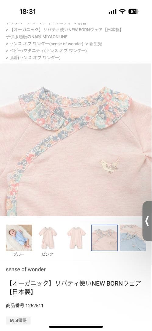 新品未使用リバティ使いNEW BORNウェアSENSE OF WONDER