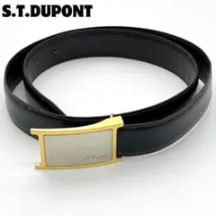 エステーデュポン ベルト ゴールド金具 ロゴ刻印 ブラック 本革 レザー