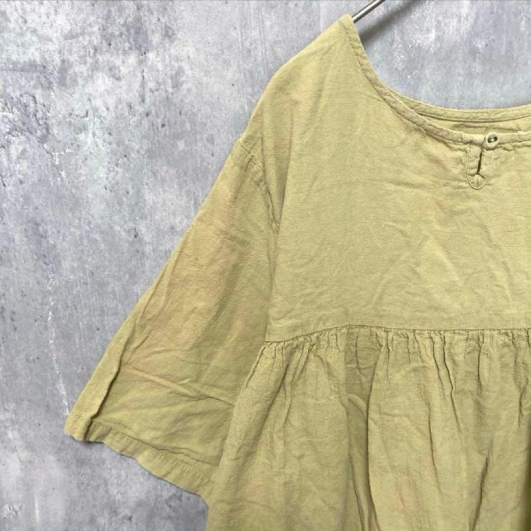 super noveイエロー北欧ワンピース綿半袖大きめフレアデザイン LL