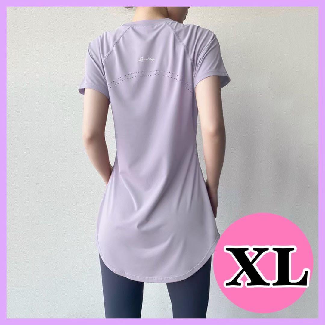 【XL】ヨガウェア ジム 体型カバー Tシャツ 半袖 トップス ピラティス 速乾