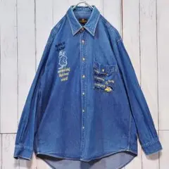 ヴィンテージNAPOLEON CLUB刺繍デニム長袖シャツ Lサイズ