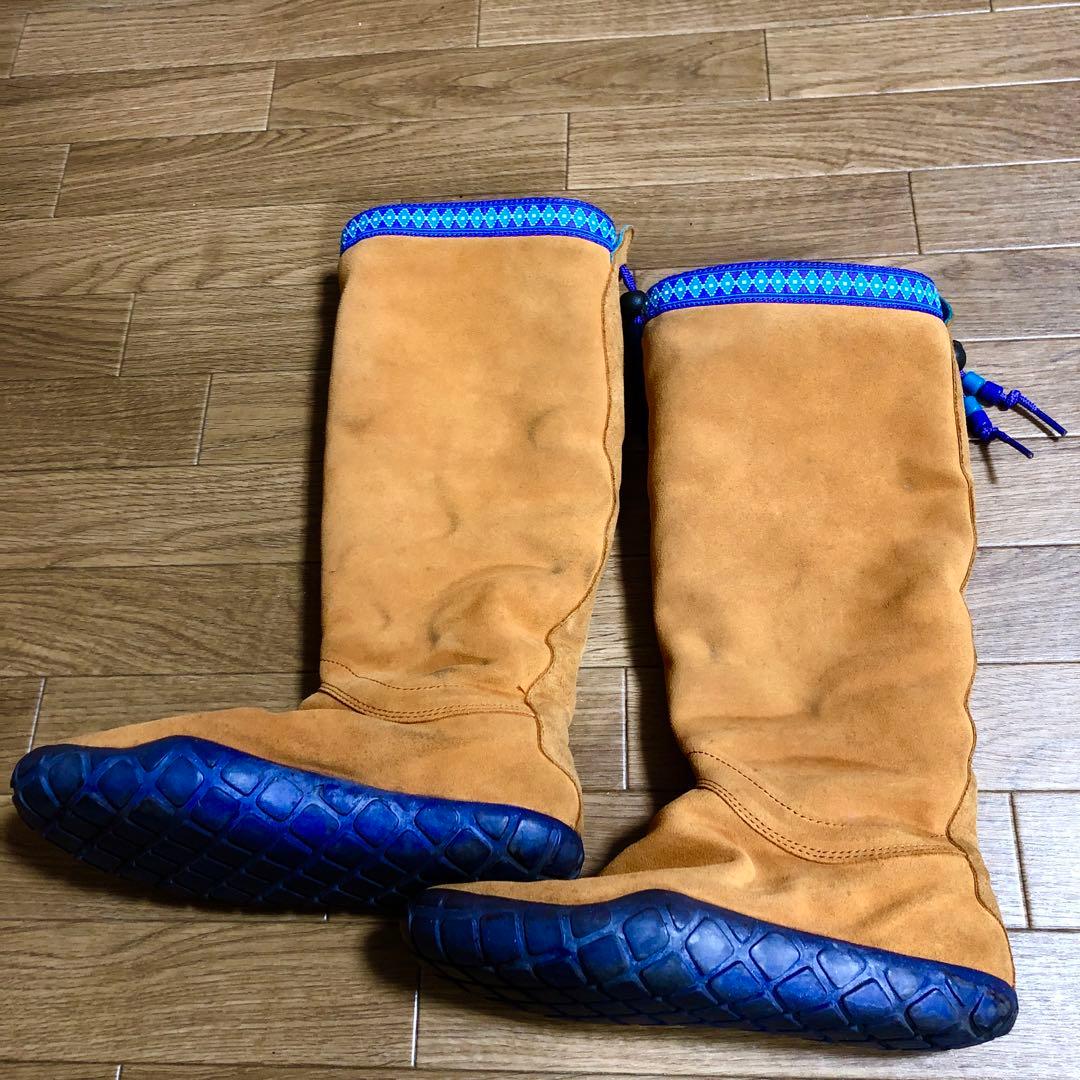 タイツ一枚でも暖かく、コーディネートの差し色としてワンポイントになるオレンジブーツです。