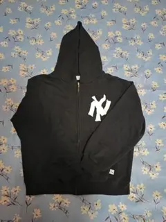 AKIMBO CLUB プリント付きファスナーパーカー ブラック