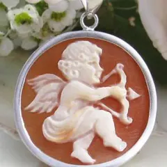 新品 ロマーノ氏 シェルカメオ ペンダントトップ 可愛い 弓矢の 天使